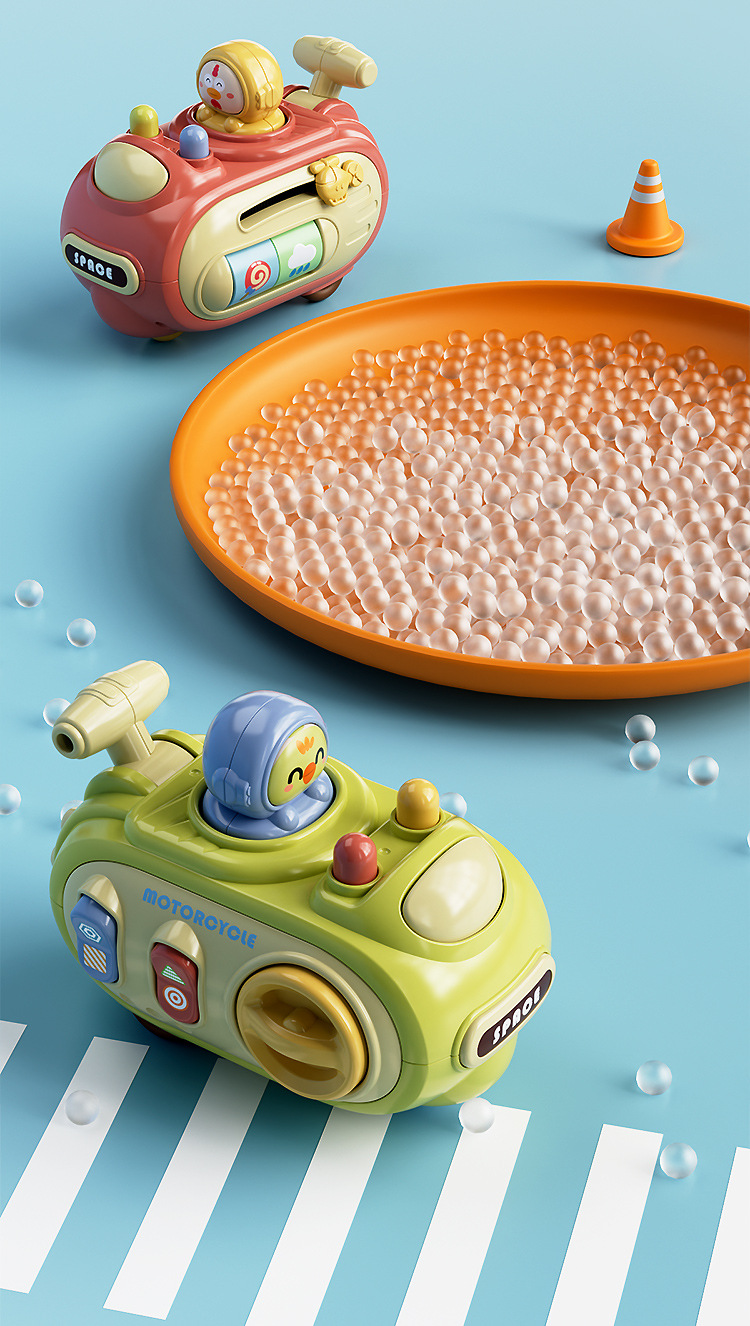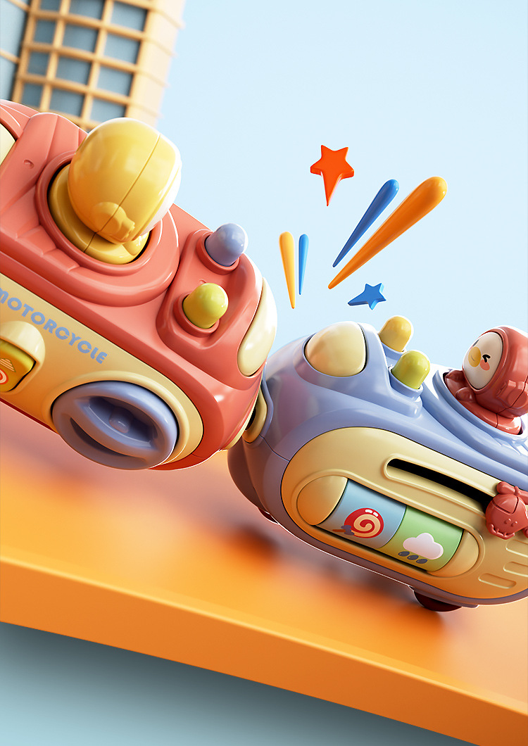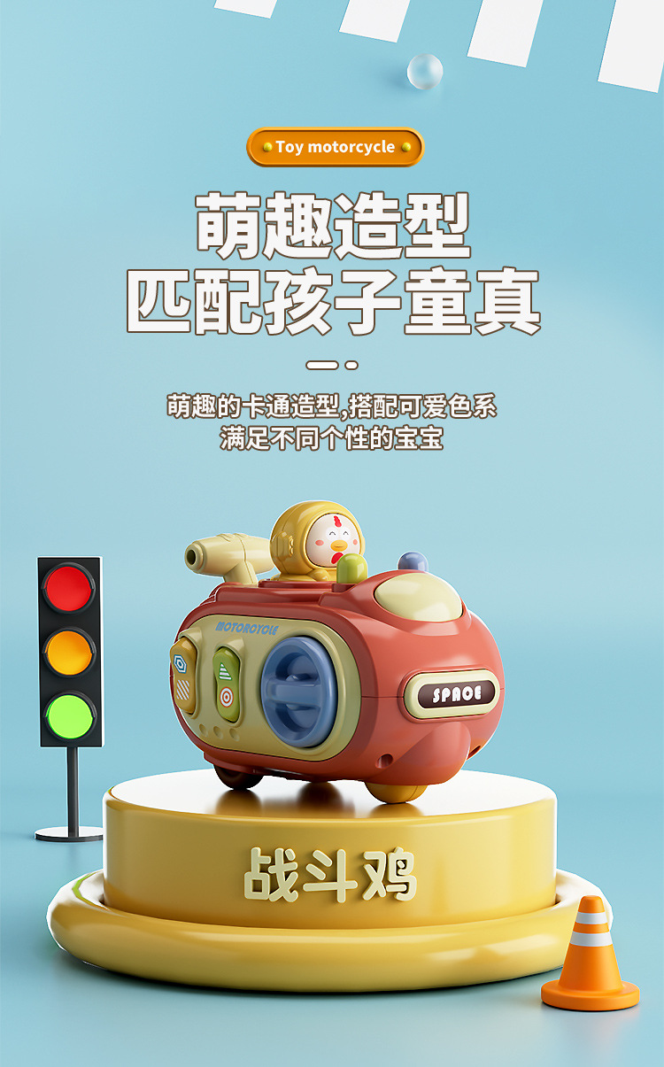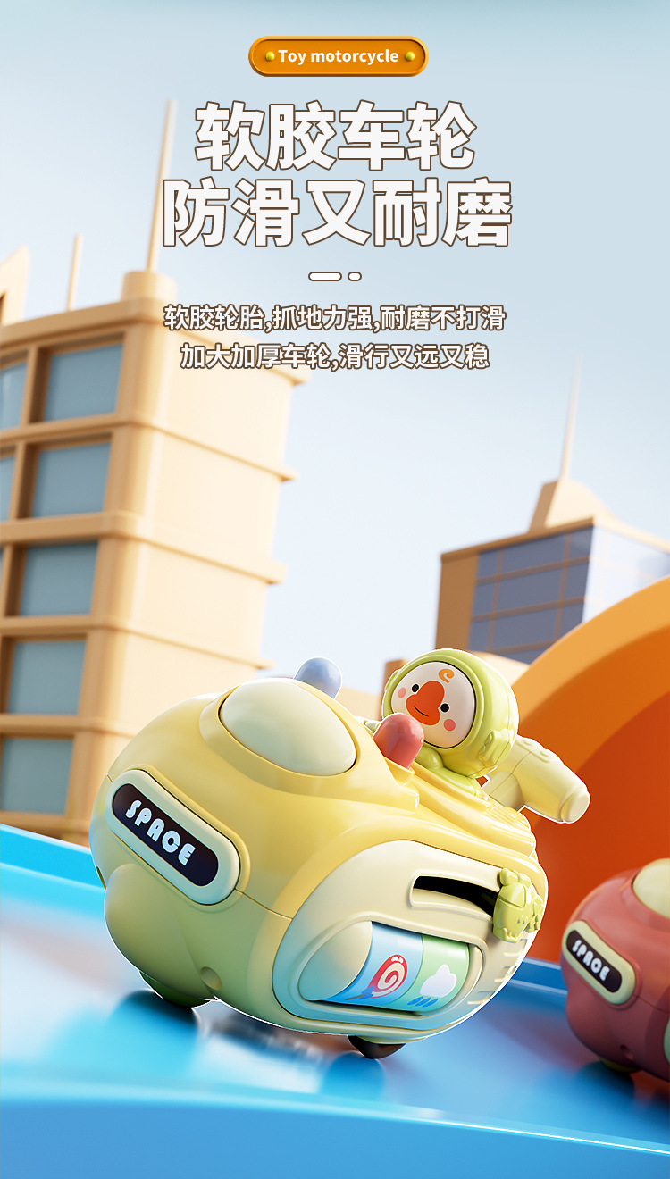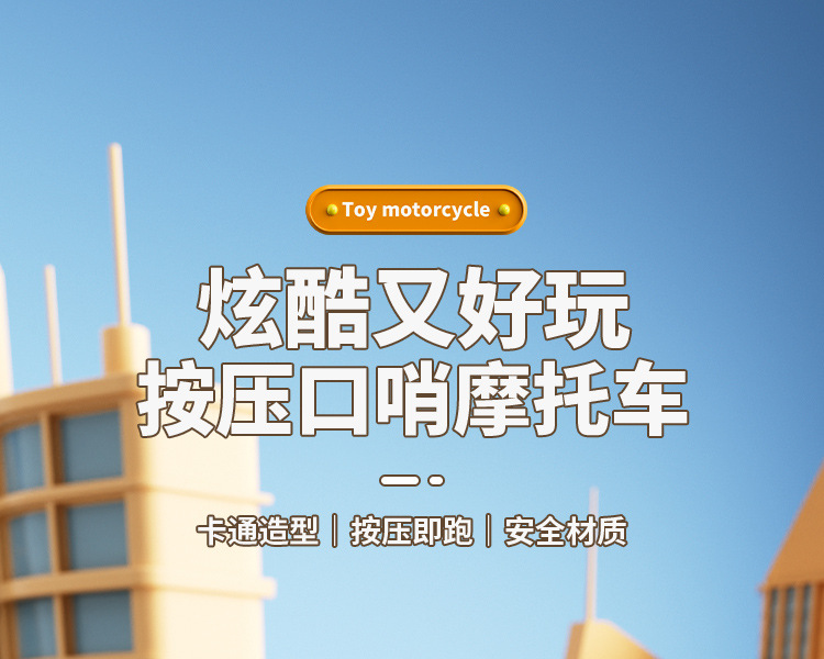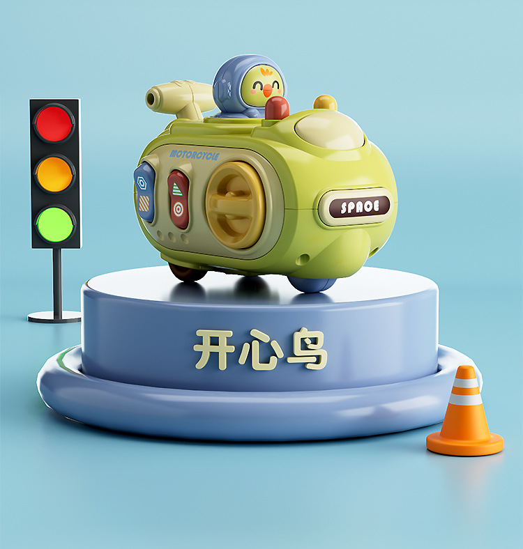 新款超萌按压口哨摩托车多玩法玩具耐摔卡通惯性车儿童碰撞玩具车