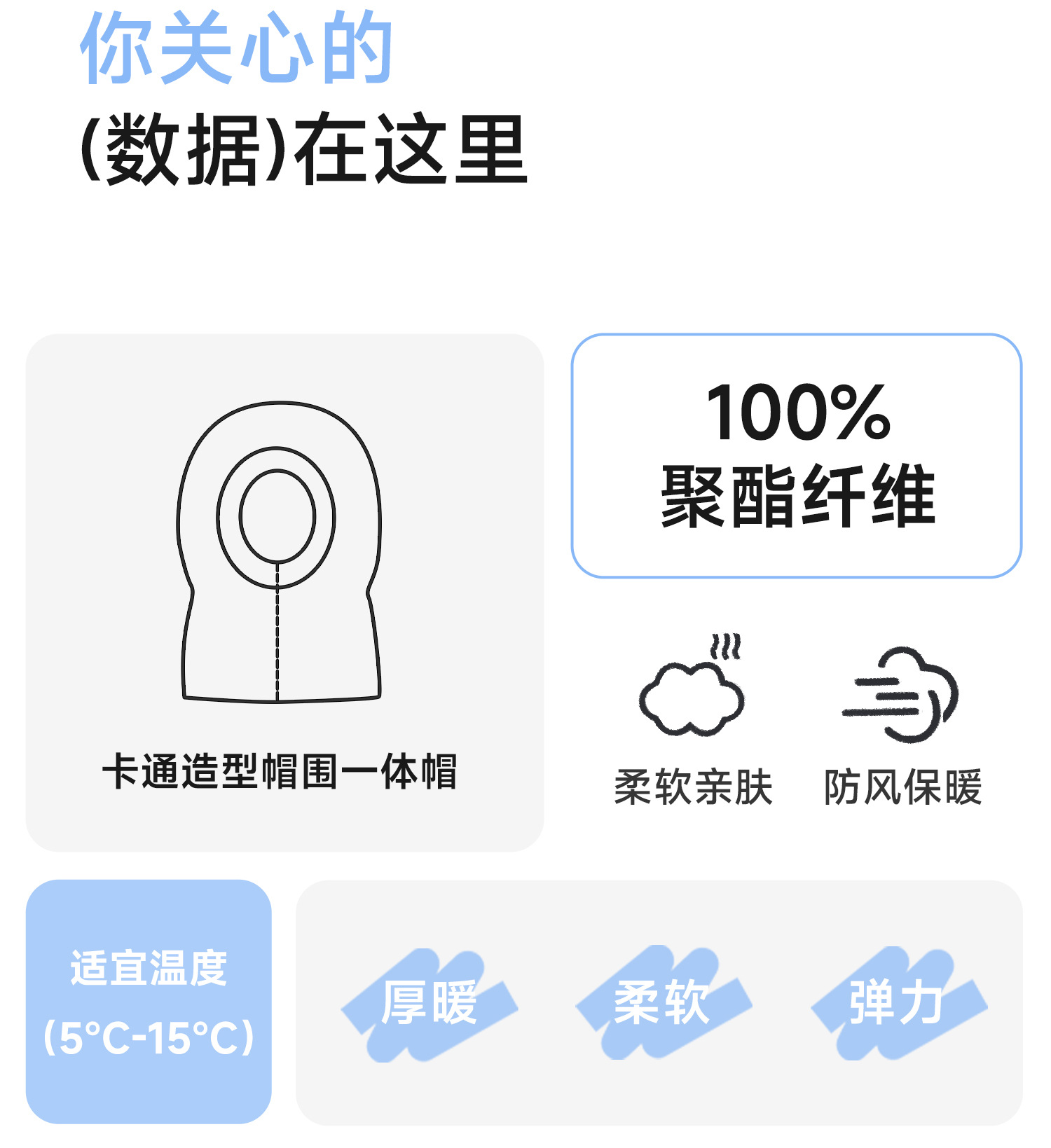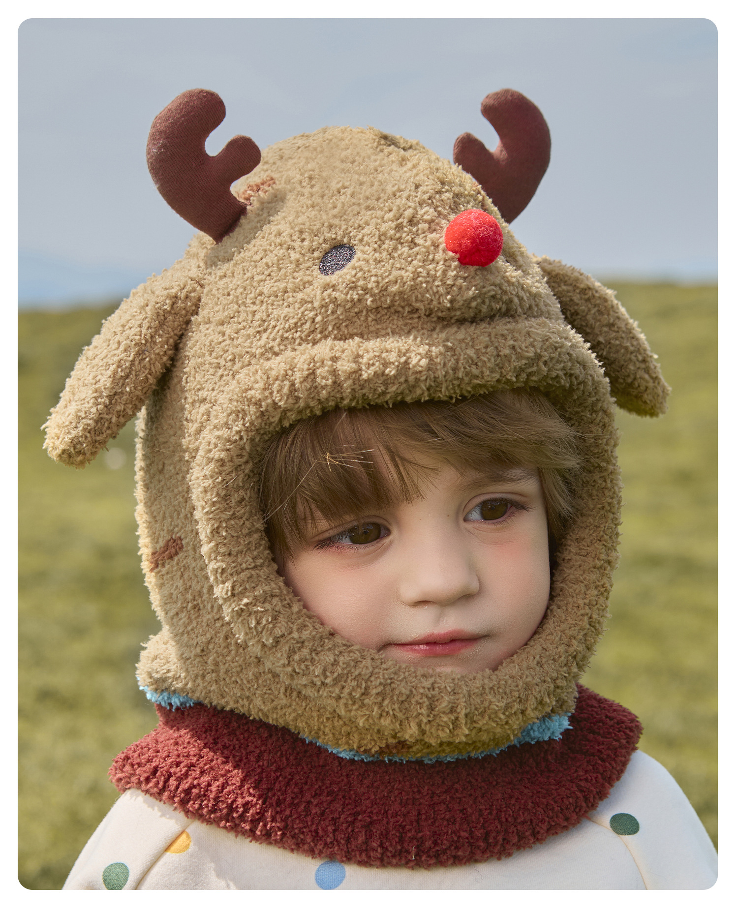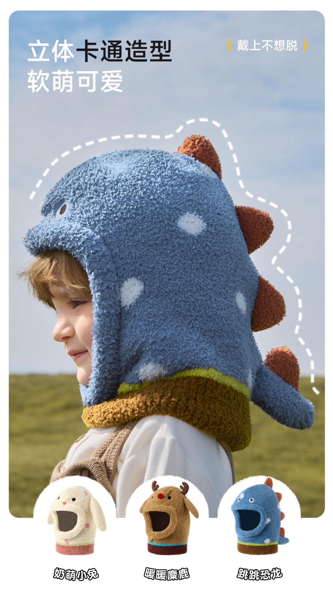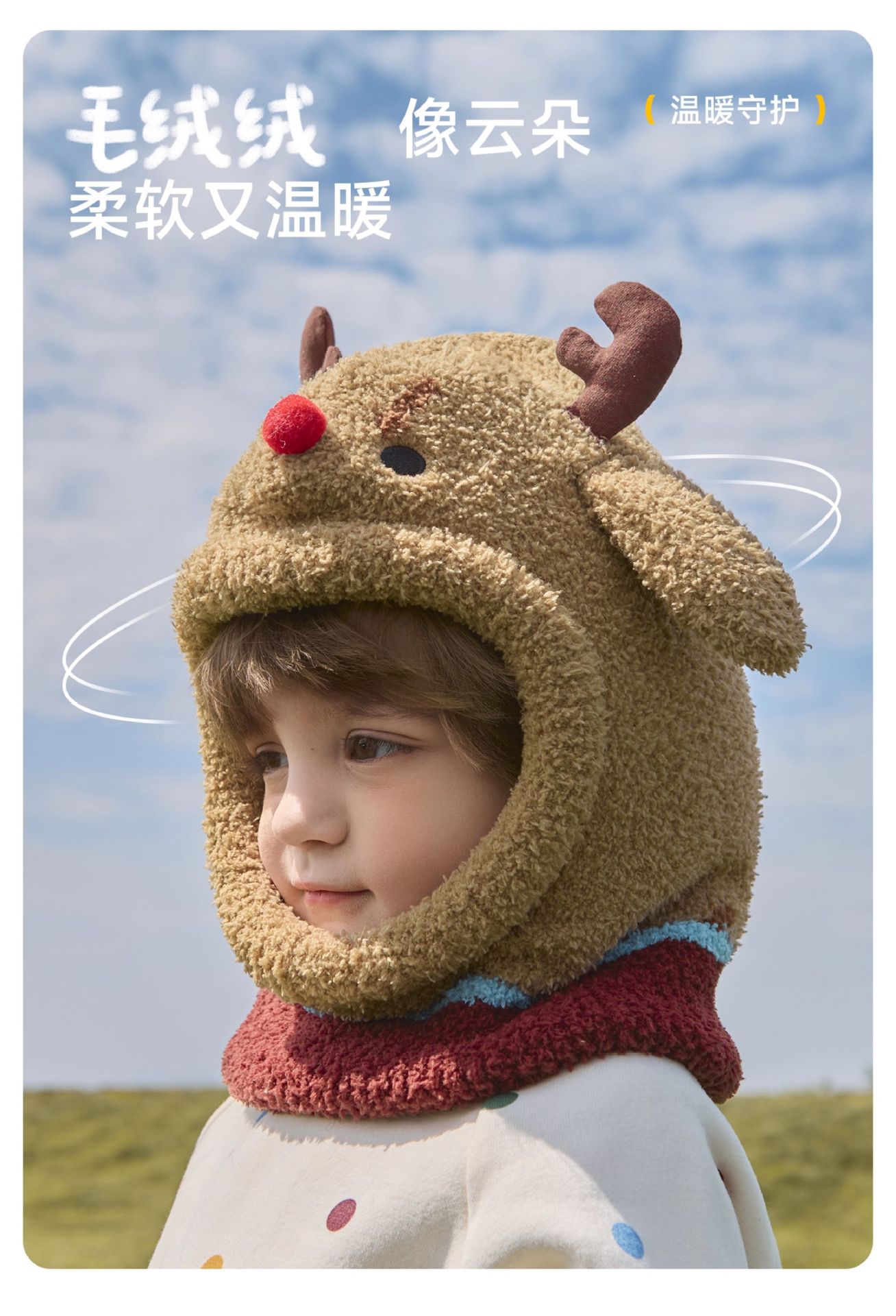 尼多熊2025新款婴儿宝宝帽子儿童围巾秋冬围脖一体套头防风护耳帽