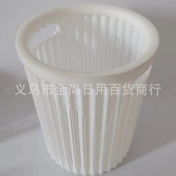 纯色条纹垃圾桶家用加厚轻奢客厅厨房卧室卫生间宿舍无盖带压圈垃