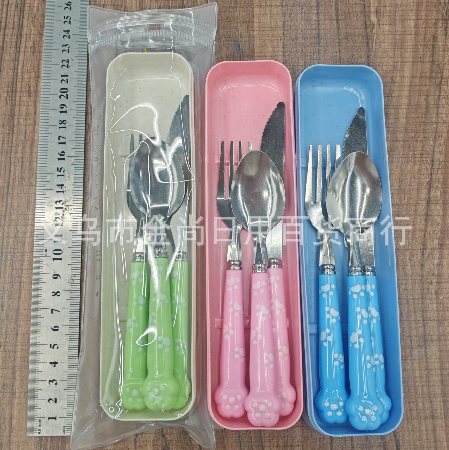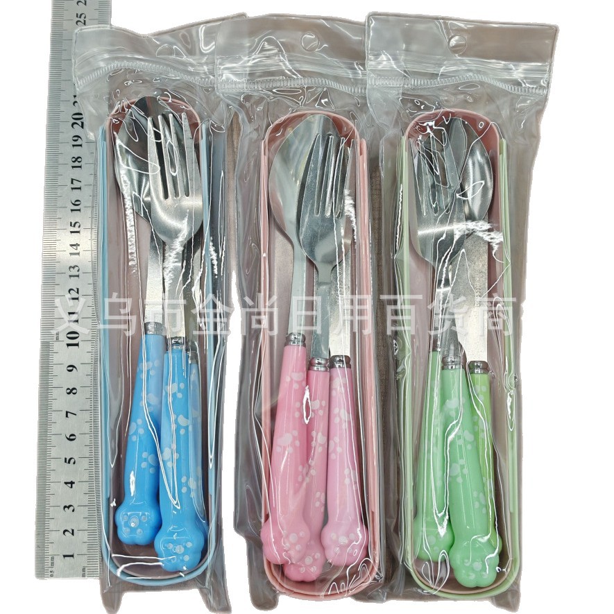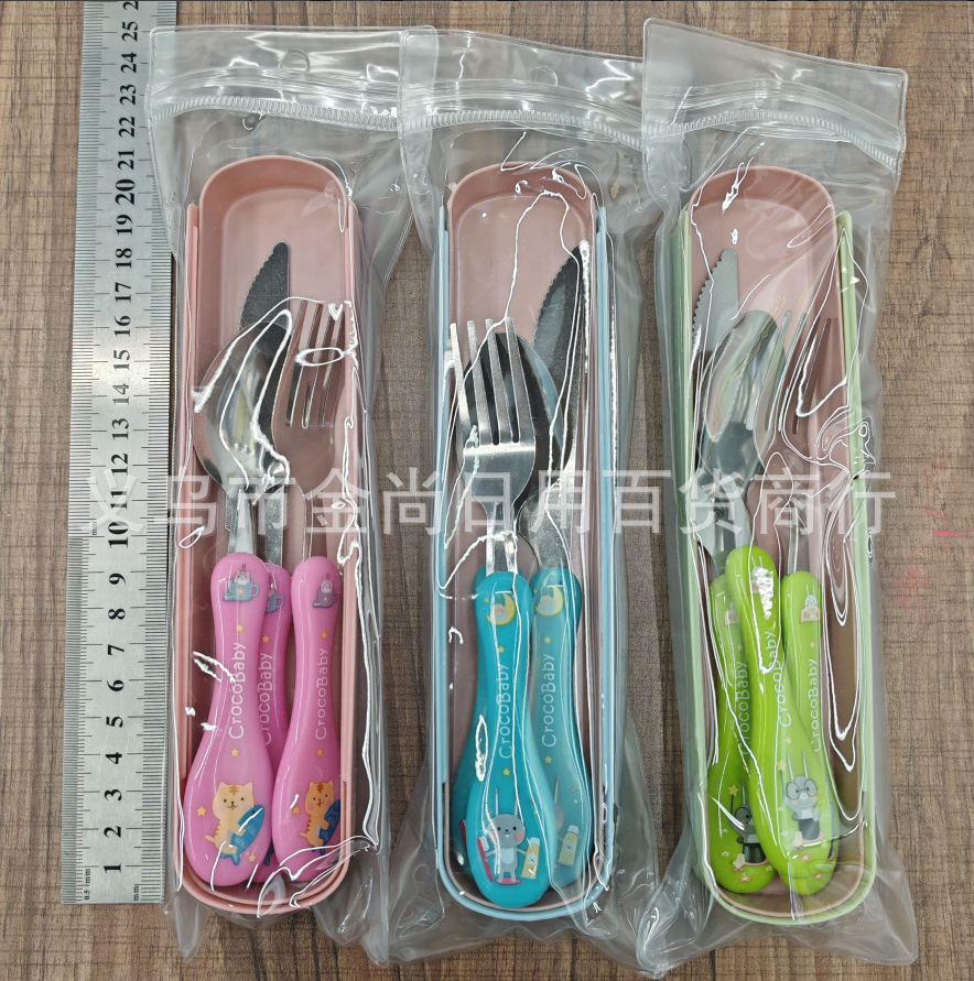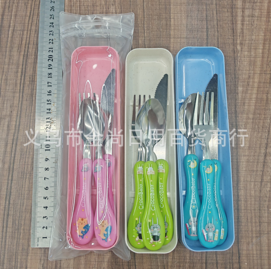 现代简约风卡通勺叉刀跨境新款热卖不锈钢金属塑料餐具套装