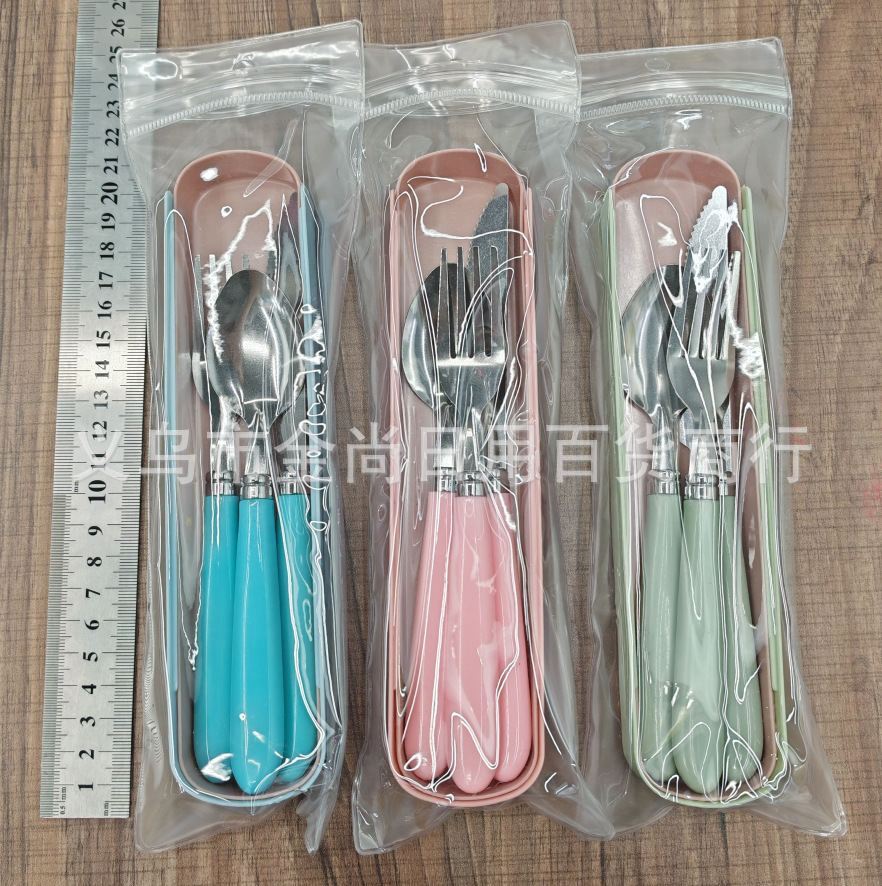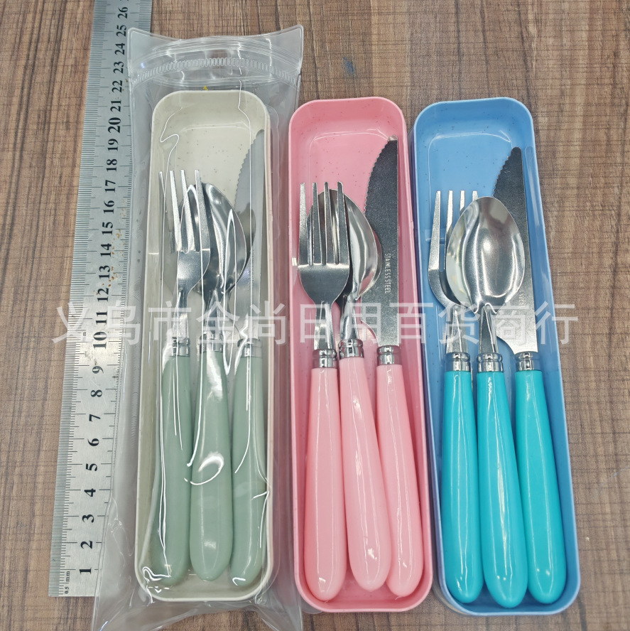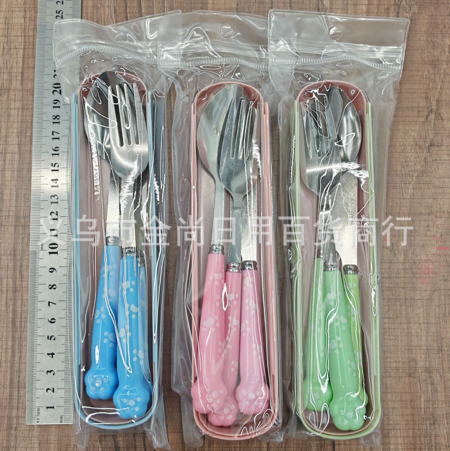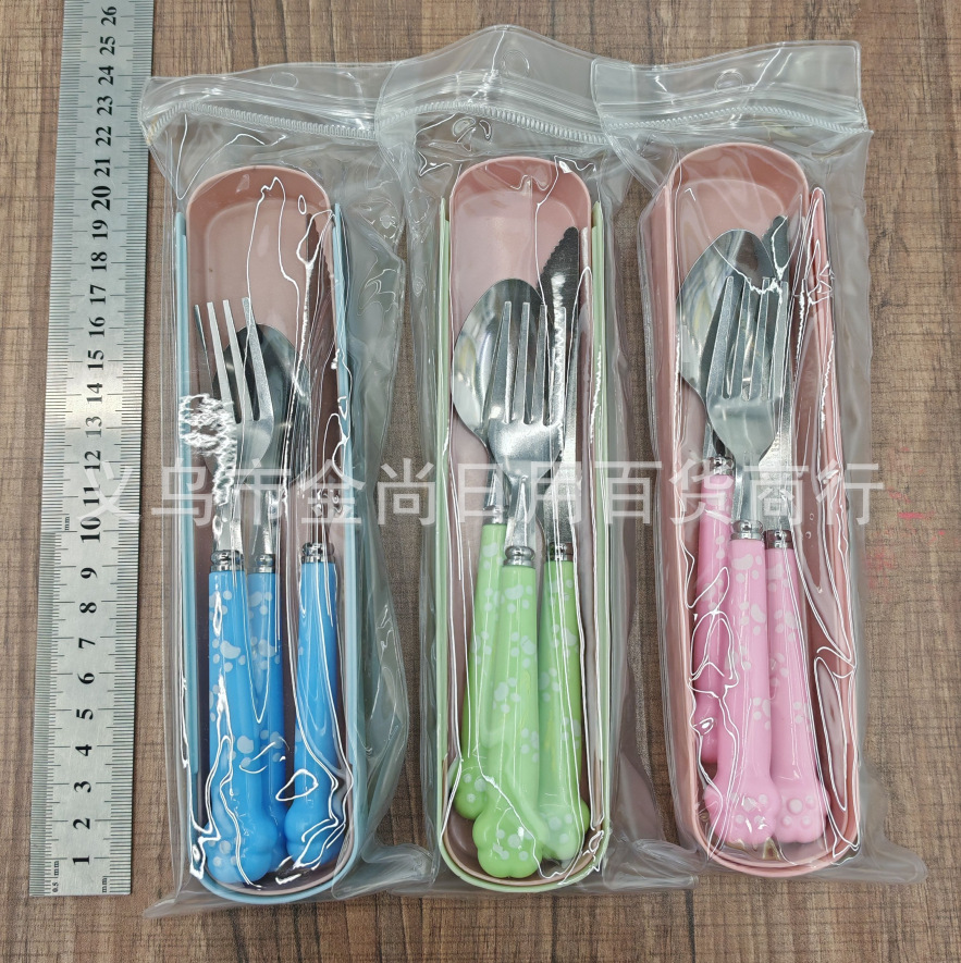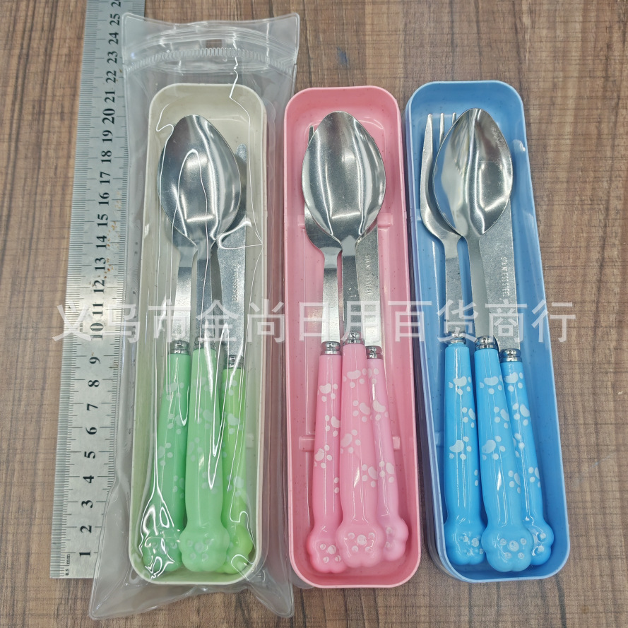 现代简约风卡通勺叉刀跨境新款热卖不锈钢金属塑料餐具套装