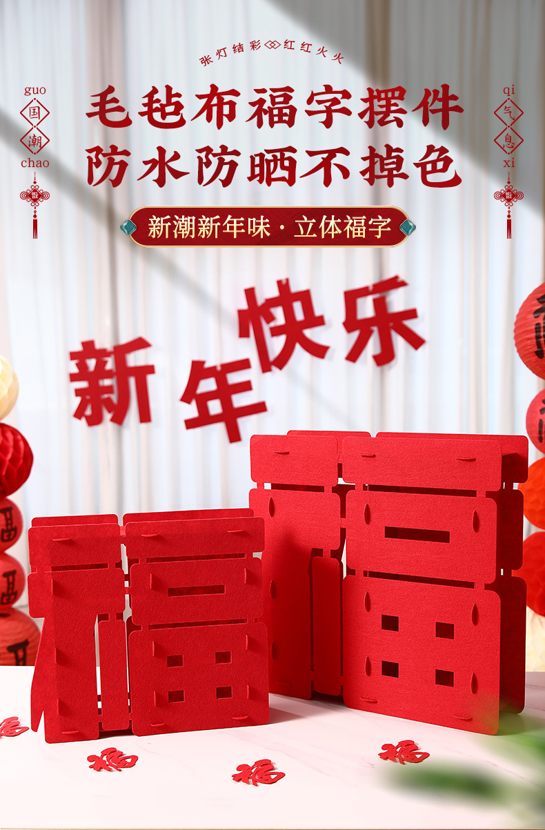 新年立体福字摆件春节装饰用品2026马年过年客厅卧室场景氛围布置