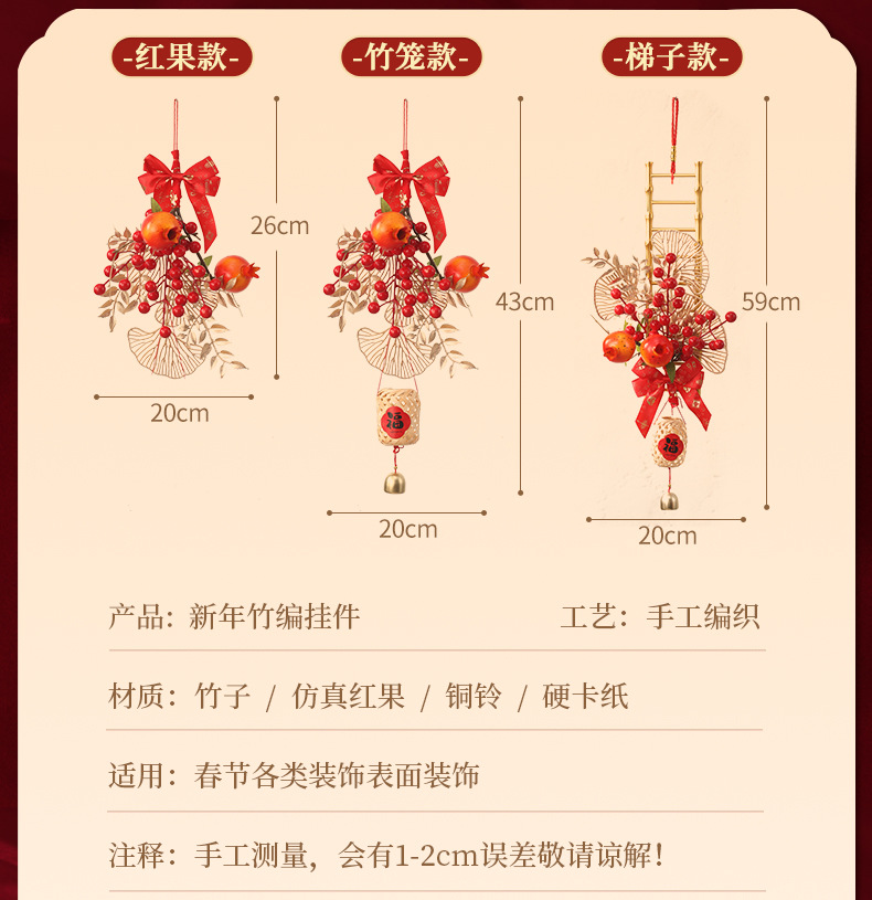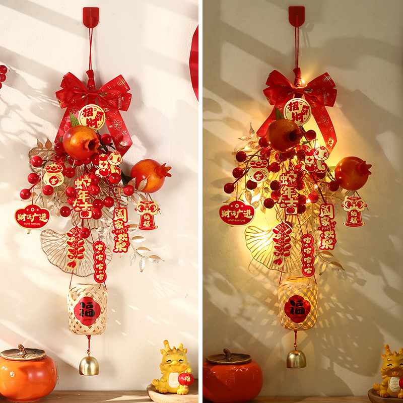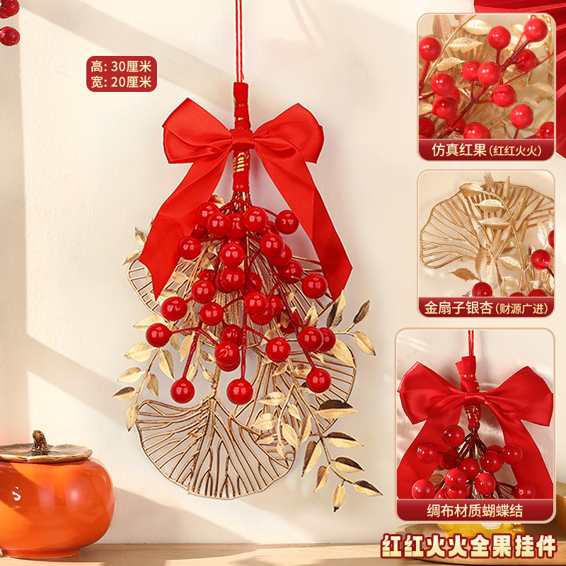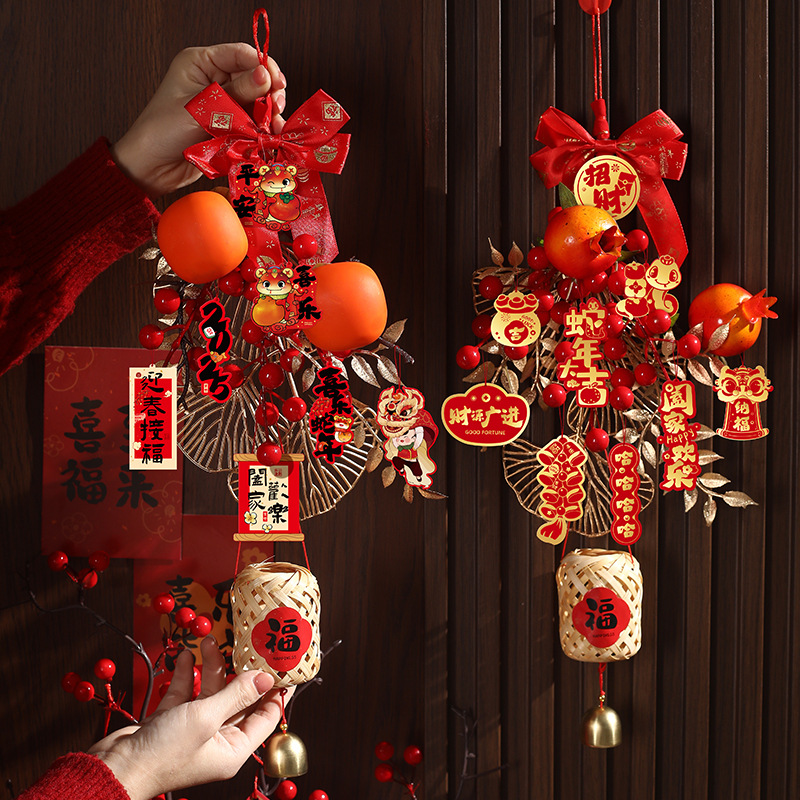喜迎新春装饰红果挂件2026新款马年客厅铃铛福字挂饰春节气氛布置