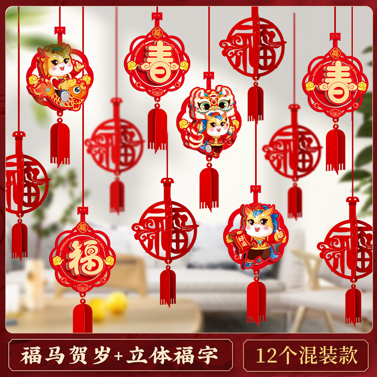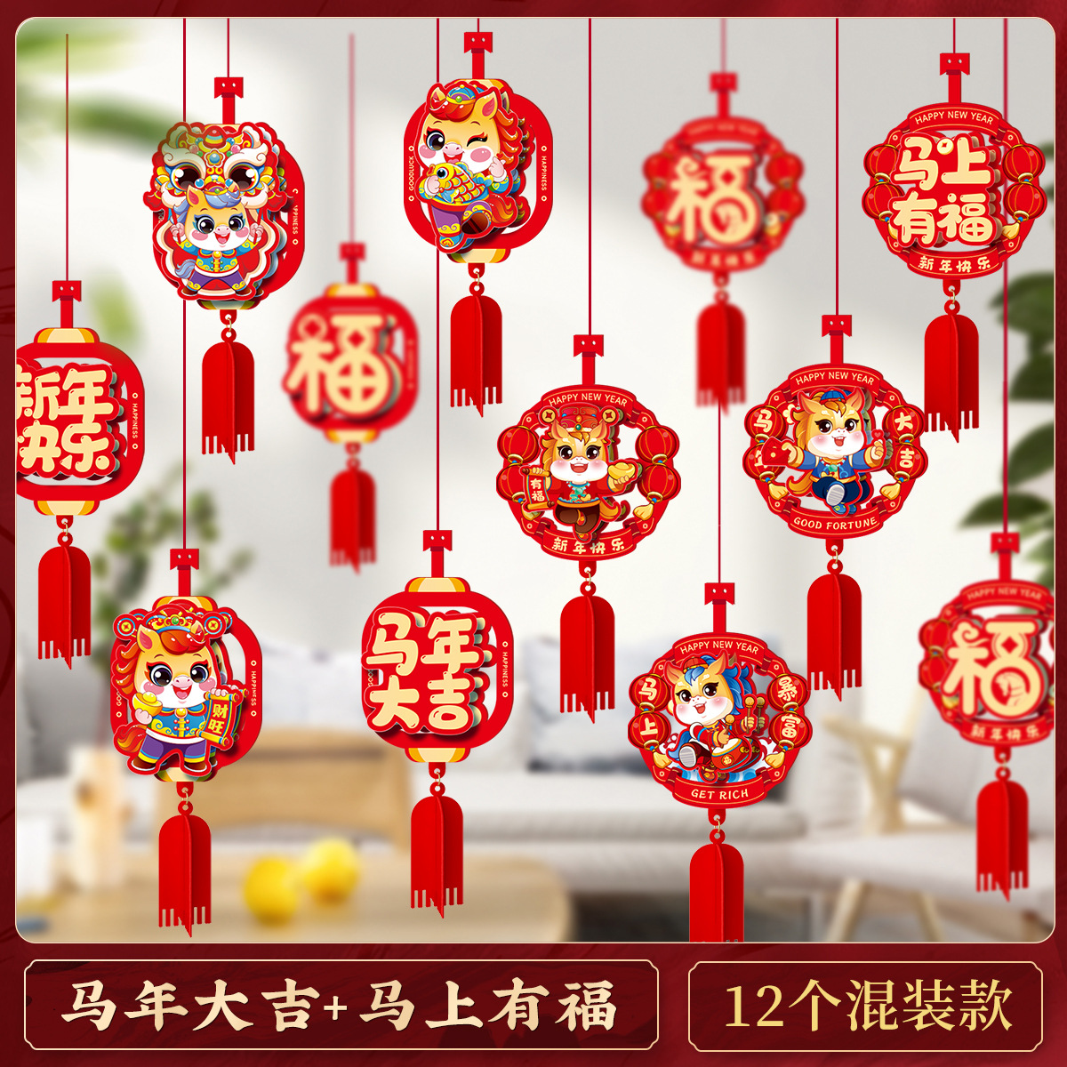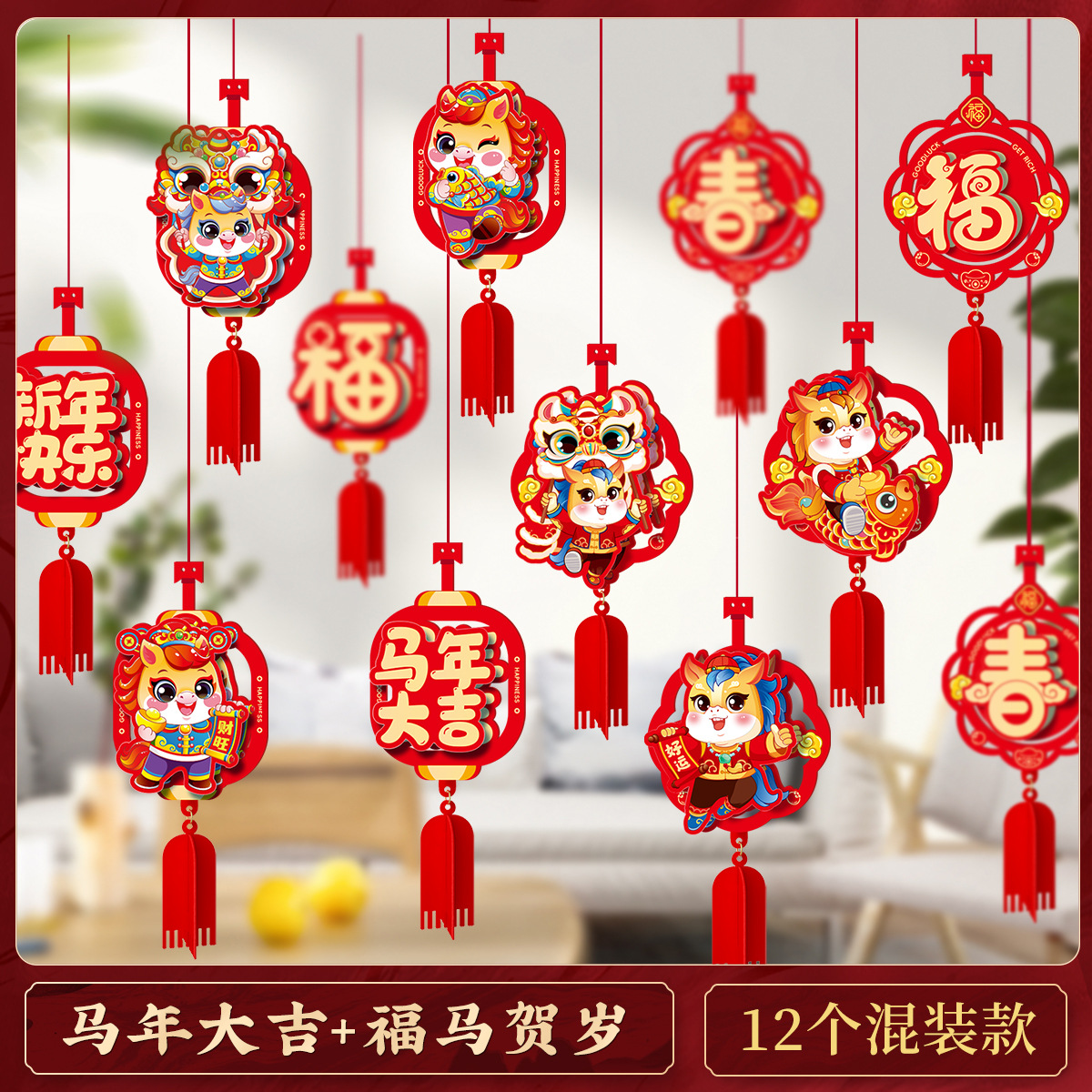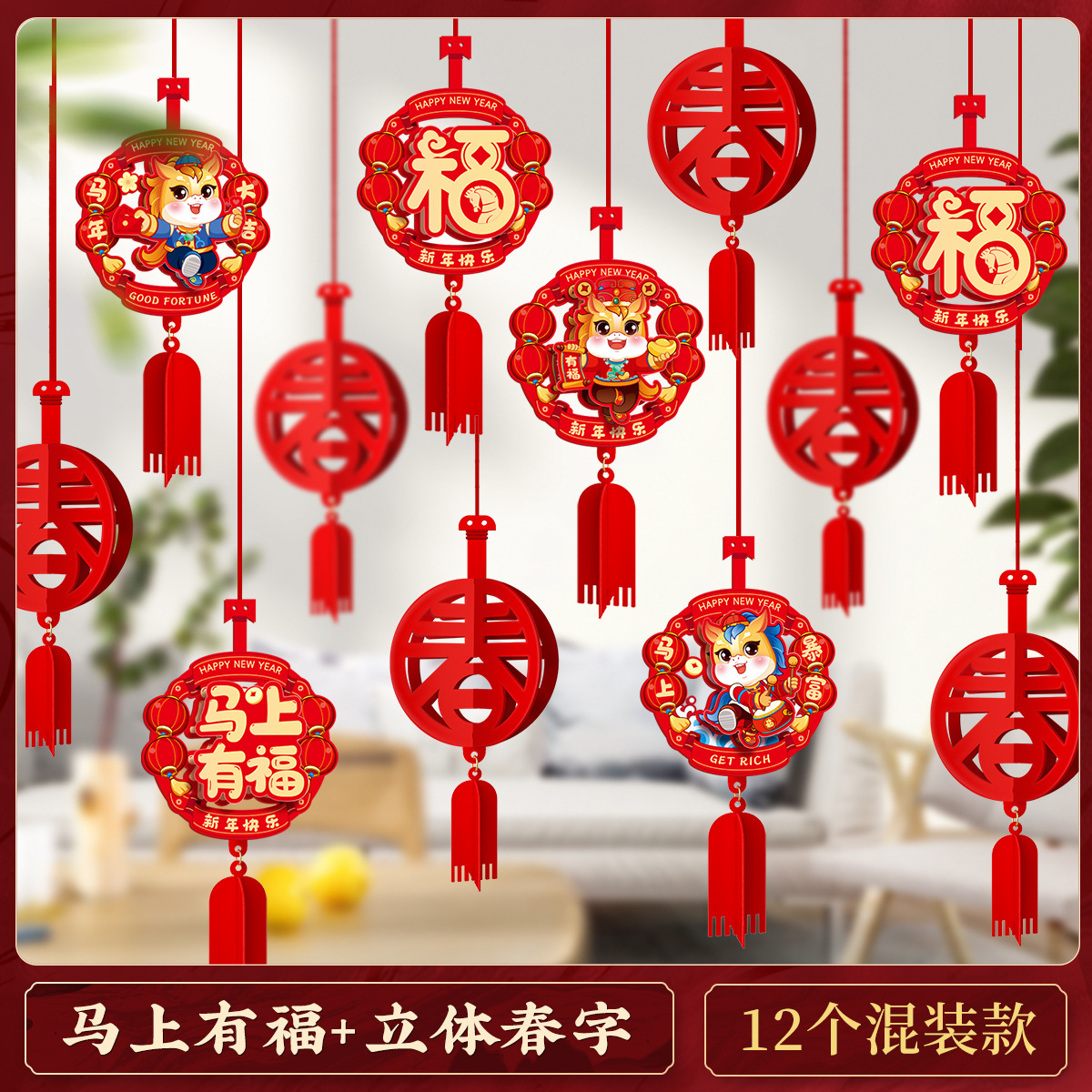 2026马年元旦新年毛条装饰品彩条拉花布置教室背景墙过年氛围挂饰