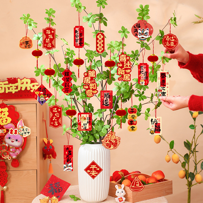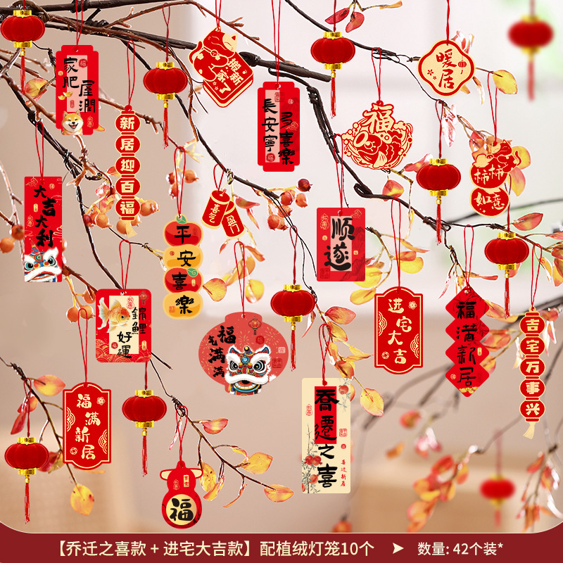 2026乔迁小挂件搬家盆景挂饰喜迁新居入宅发财树上小灯笼布置挂饰