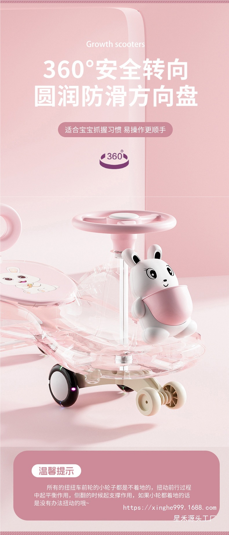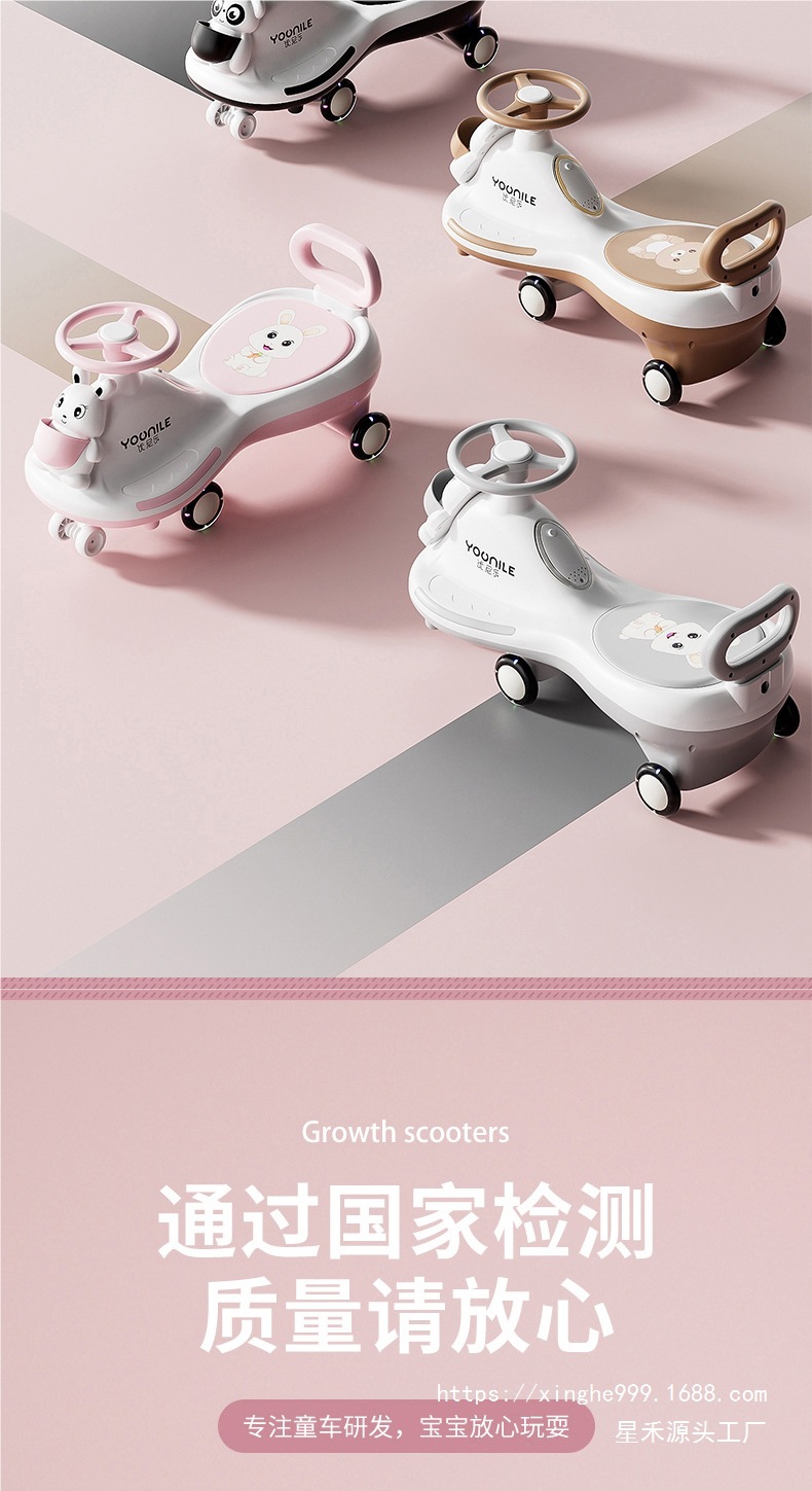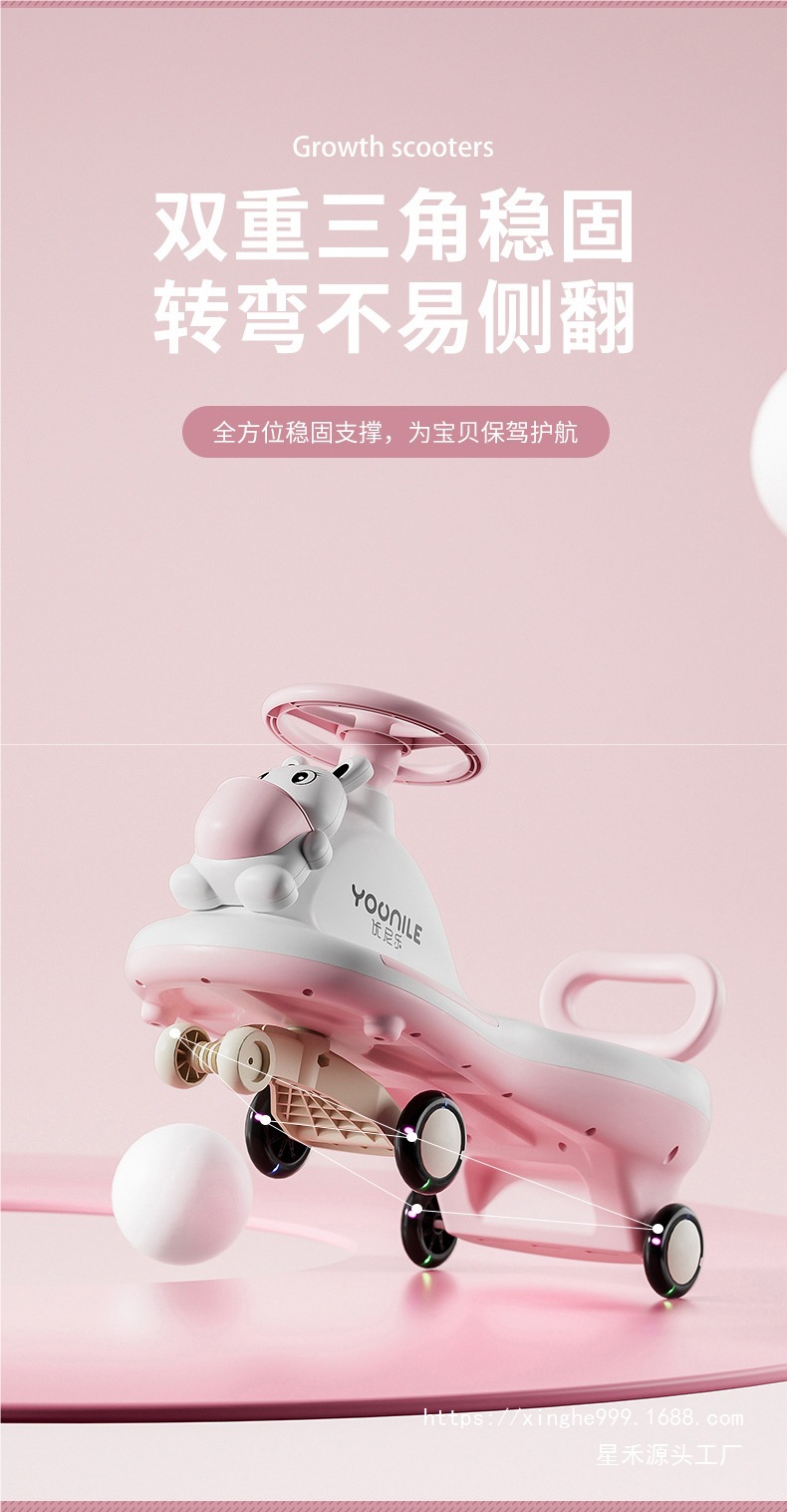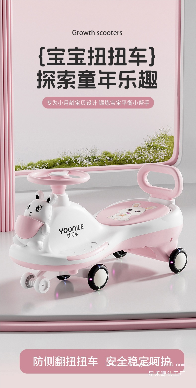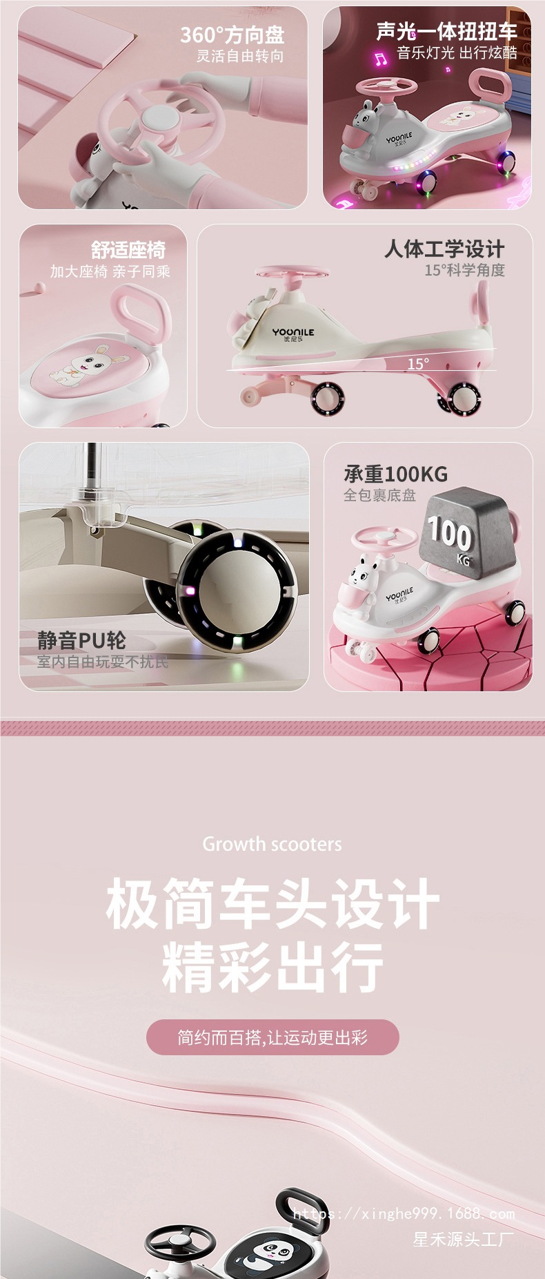 新款婴幼儿童扭扭车防侧翻男女宝宝1-6溜溜车带音乐手推遛娃车