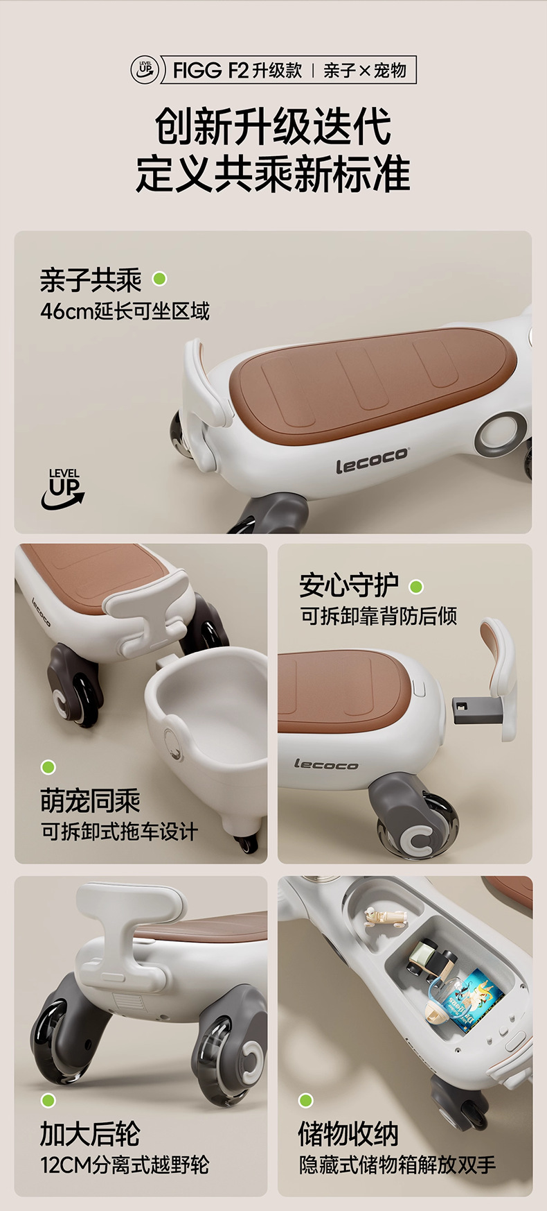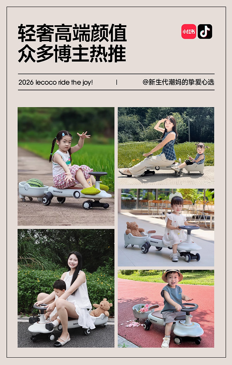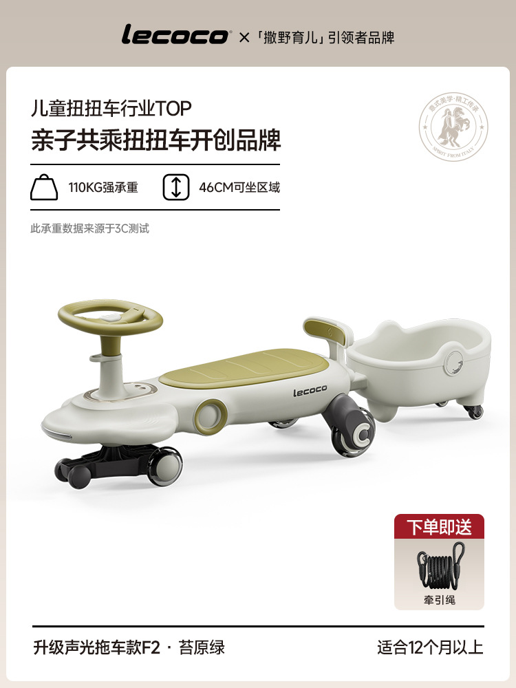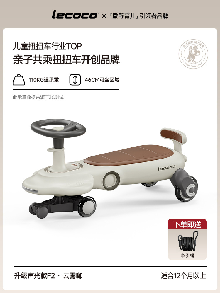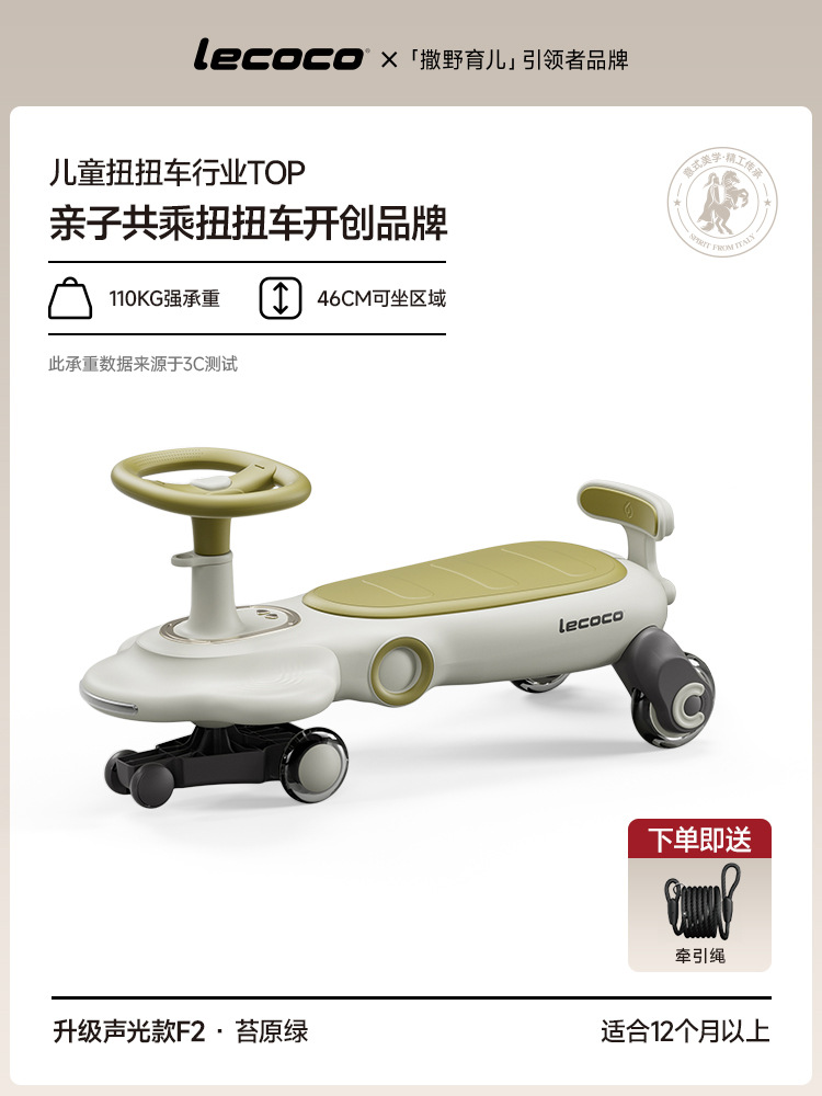 lecoco乐卡儿童扭扭车F2男女孩声光摇摇车2-8岁防侧翻宝宝溜溜车