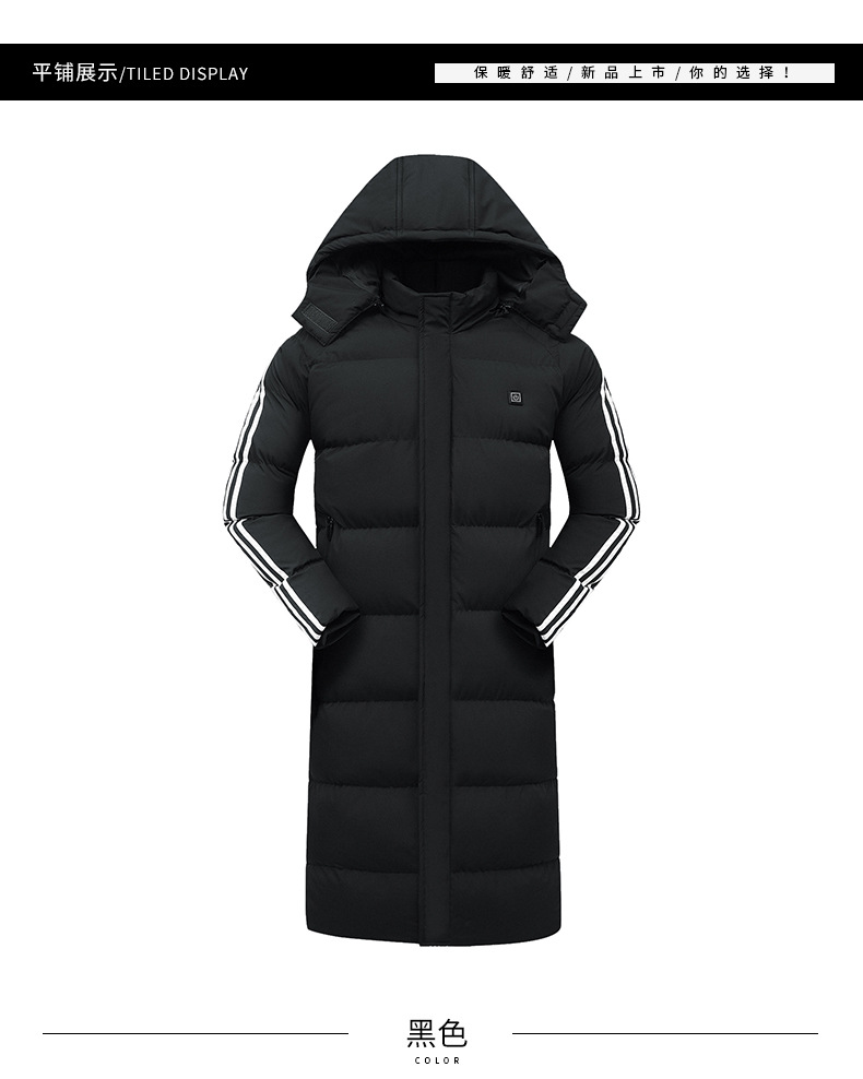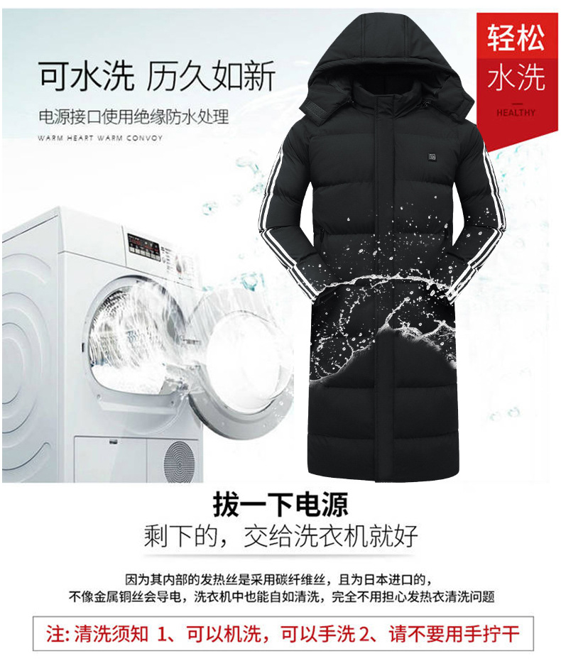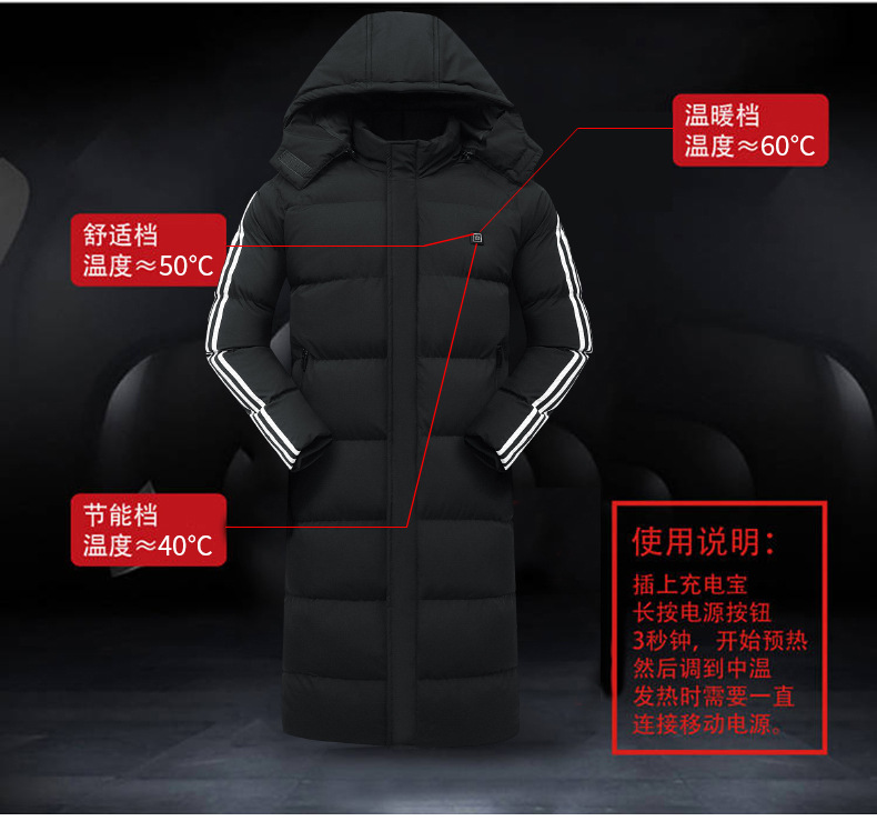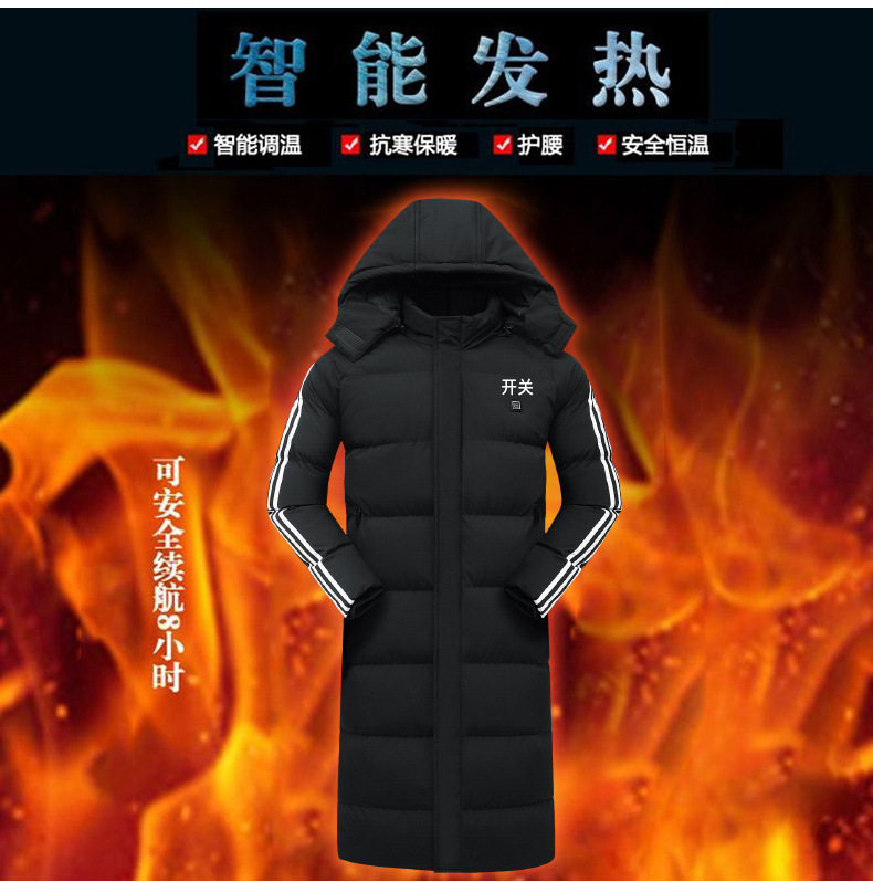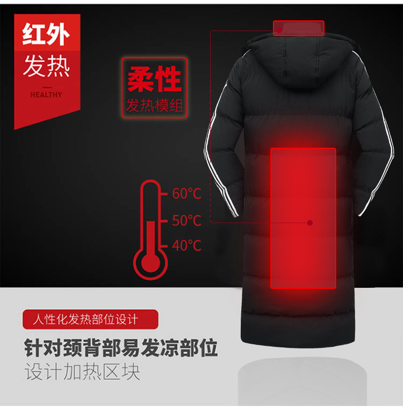 发热服冬季智能发热羽绒棉衣加热衣服电热男女过膝长款充电发热服
