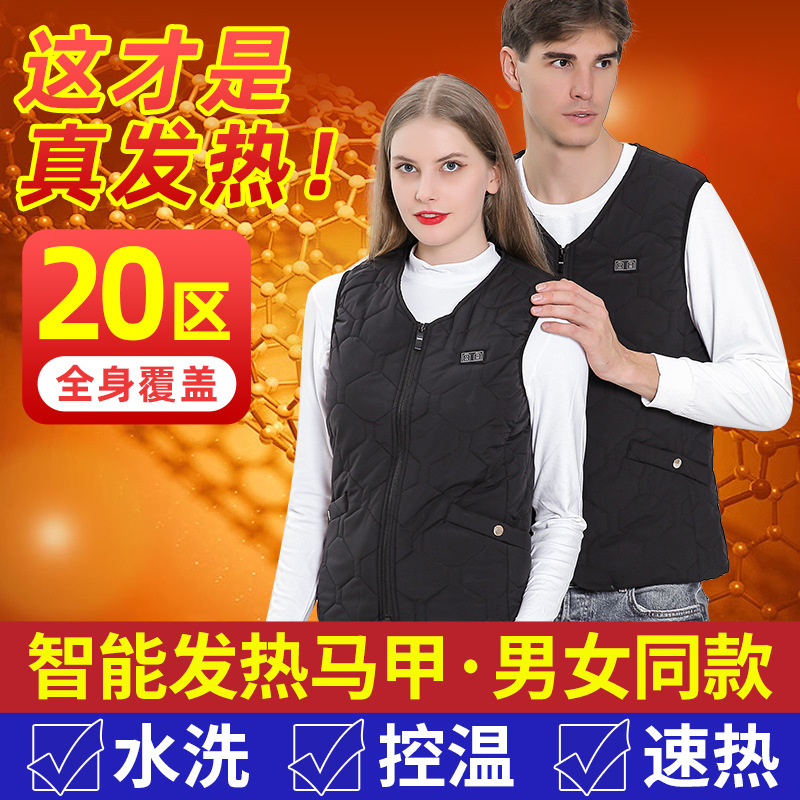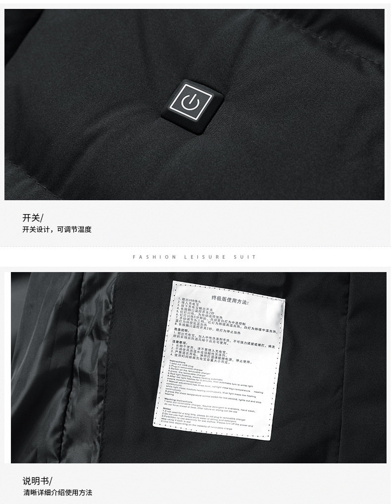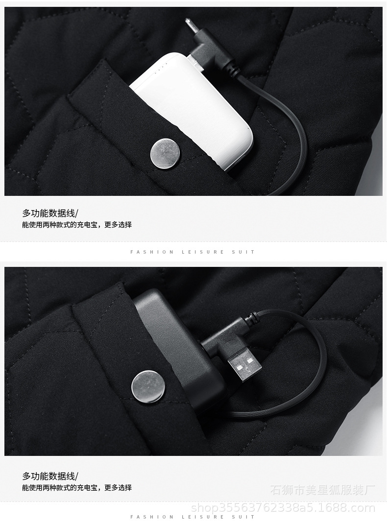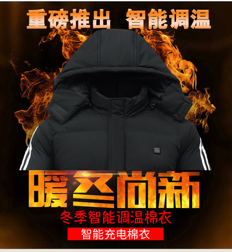 发热服冬季智能发热羽绒棉衣加热衣服电热男女过膝长款充电发热服