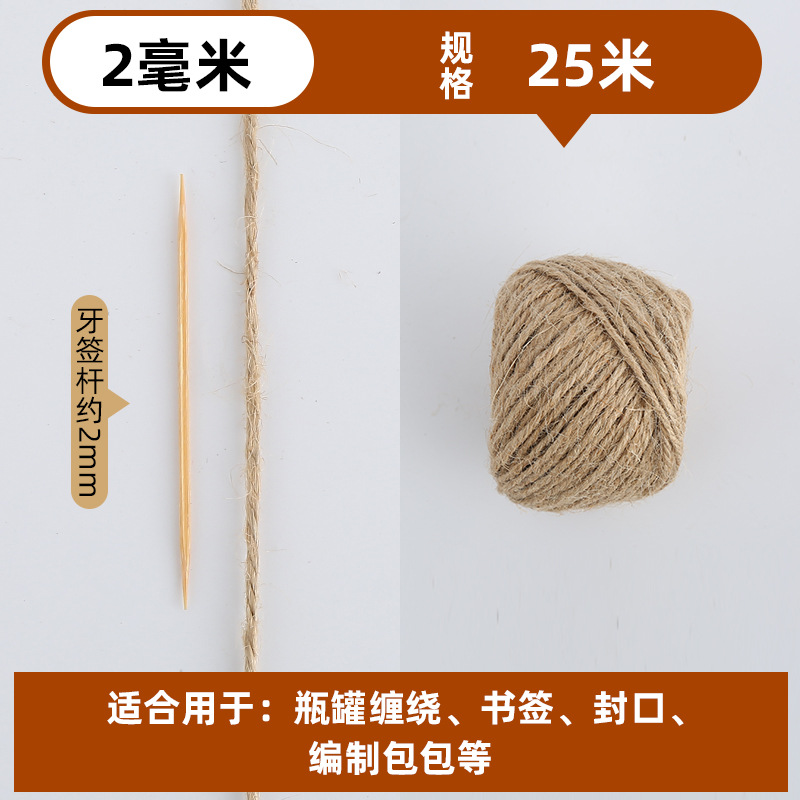 1.5-3mmDIY手工编织彩色麻绳装饰复古风格照片夹子黄麻绳25/50米