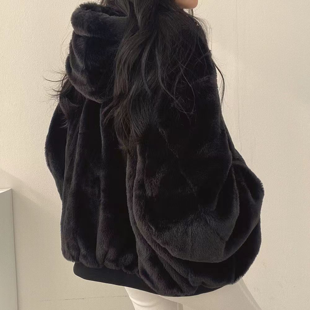 韩国加绒加厚两面穿羊羔毛棉服女装外套冬季新款宽松连帽棉衣上衣