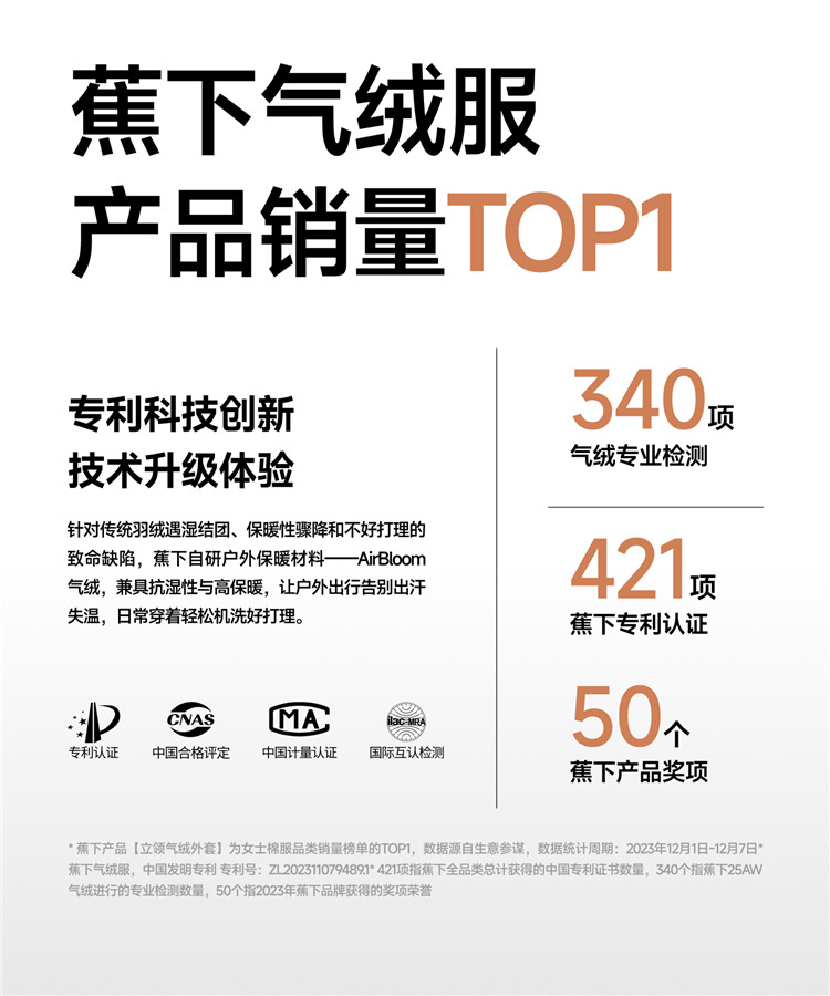 蕉下CL002女士圆领气绒服外套抗湿冷轻盈保暖防泼水秋冬新品内搭