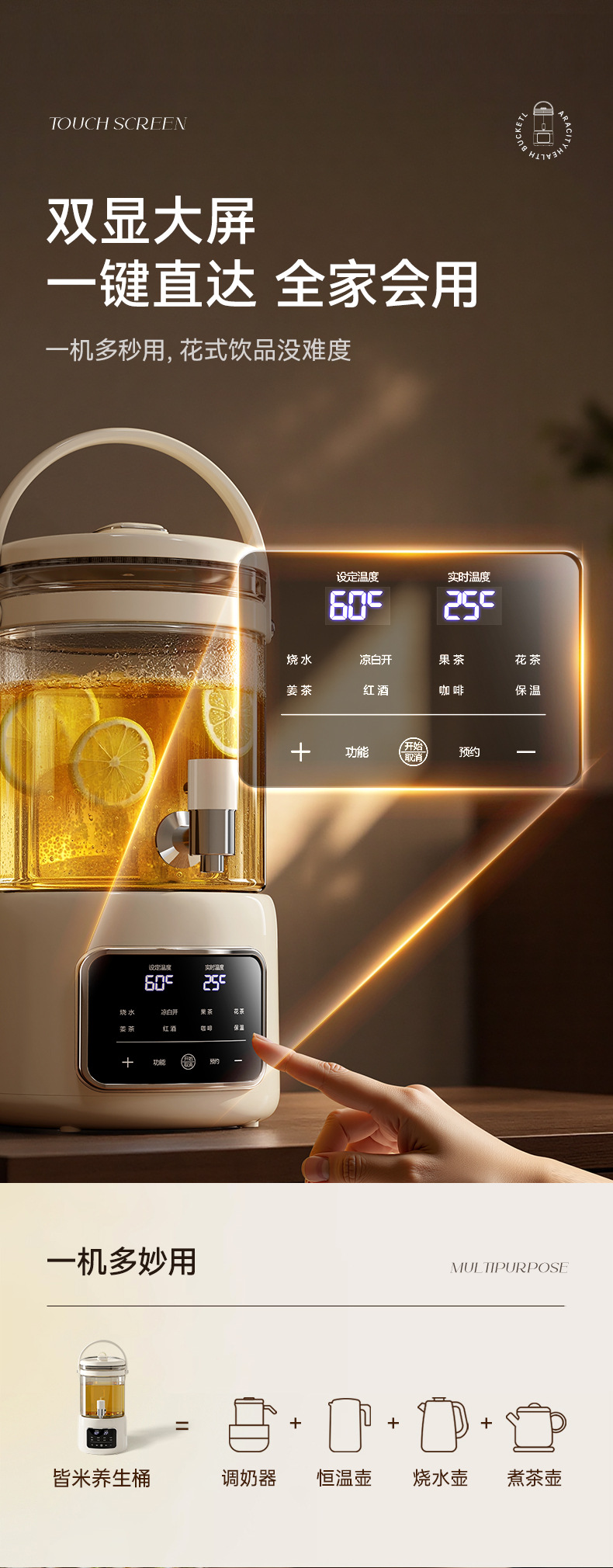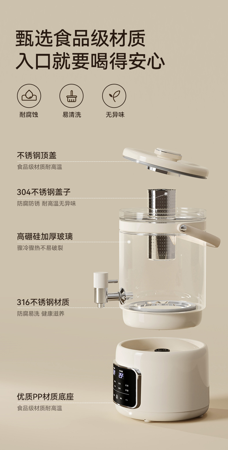 皆米全玻璃养生壶花茶壶家用户外办公小型多功能炖煮烧水壶恒温壶