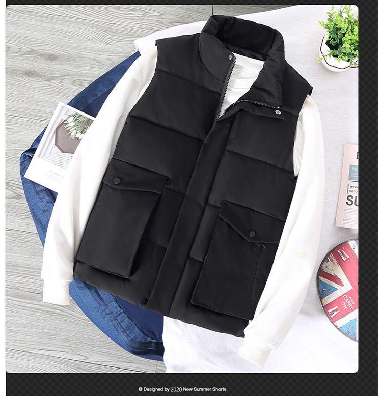 跨境秋冬季立领外套马夹羽绒棉马甲男加厚棉衣坎肩背心定制印logo