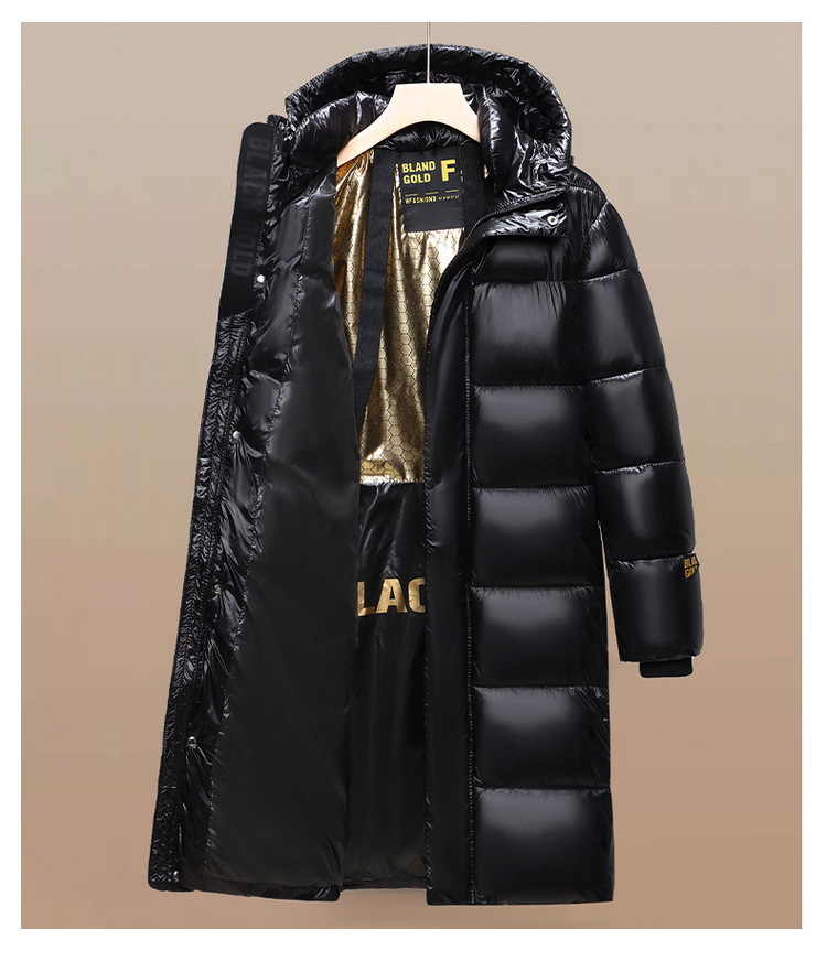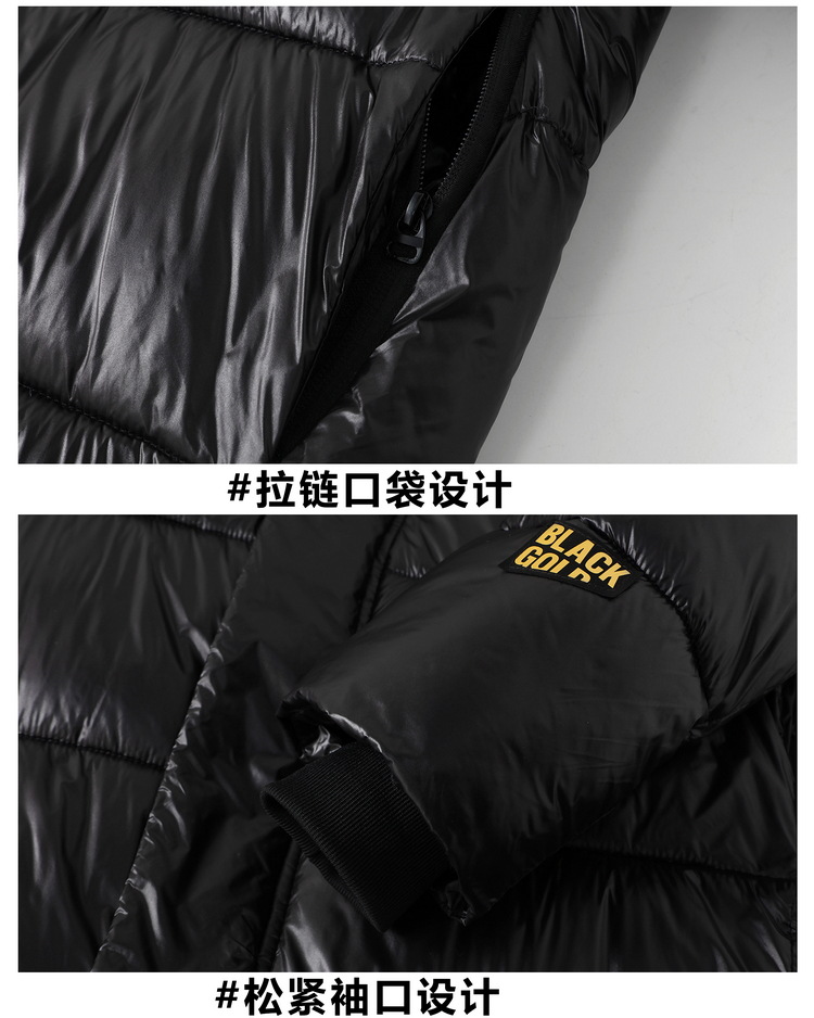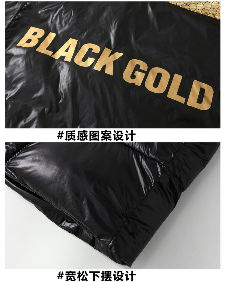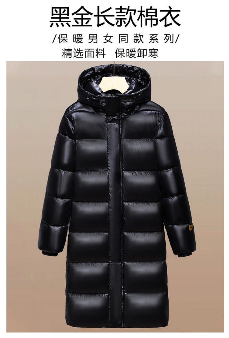 跨境冬装长款外套2024冬季新款黑金棉服男生潮流宽松亮面棉衣加厚