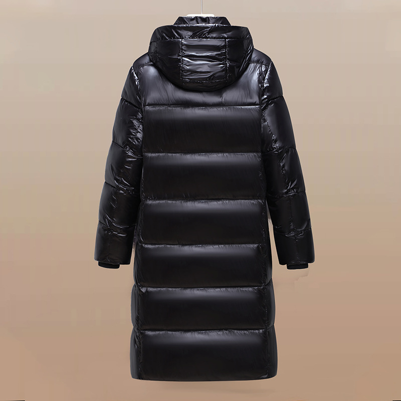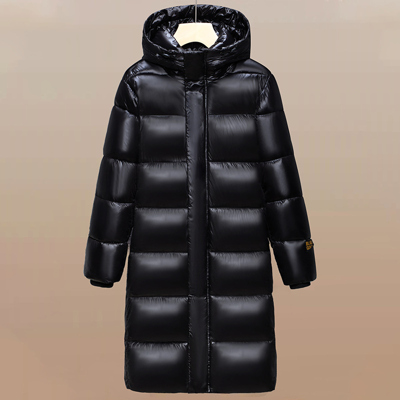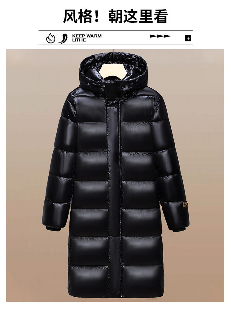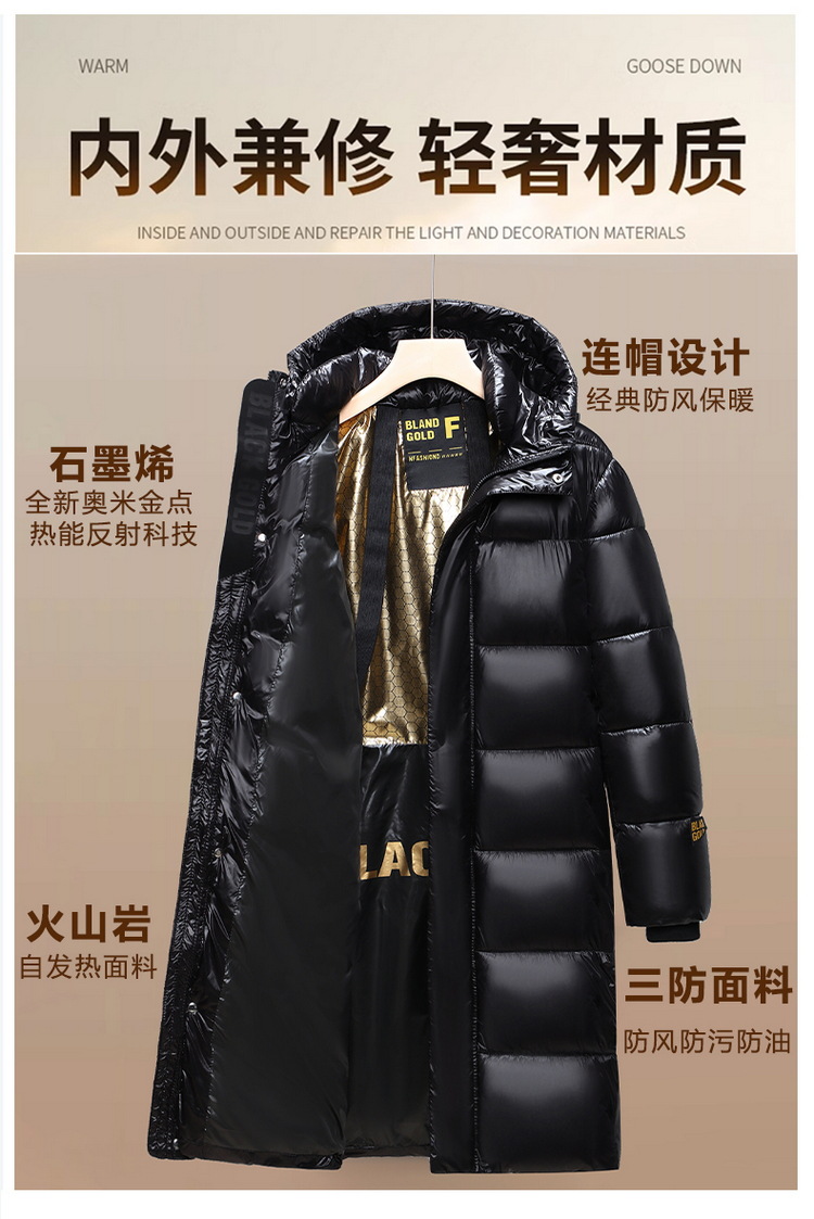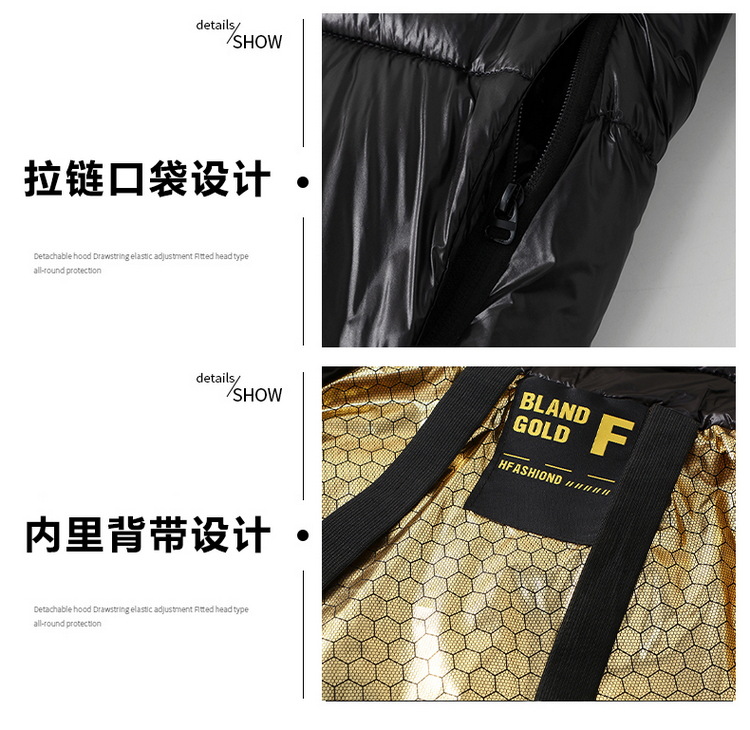 跨境冬装长款外套2024冬季新款黑金棉服男生潮流宽松亮面棉衣加厚