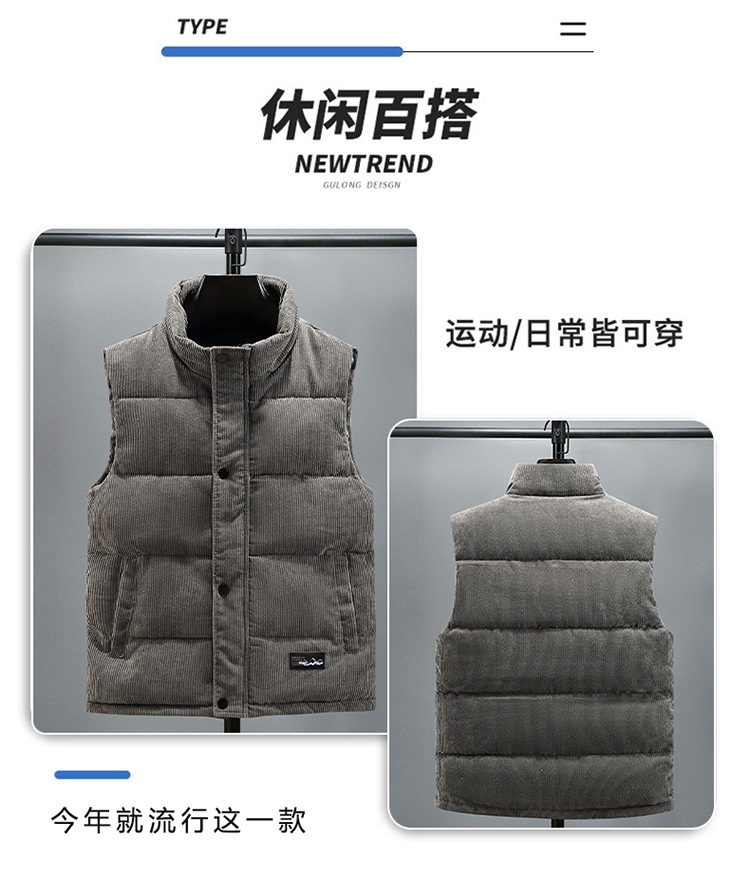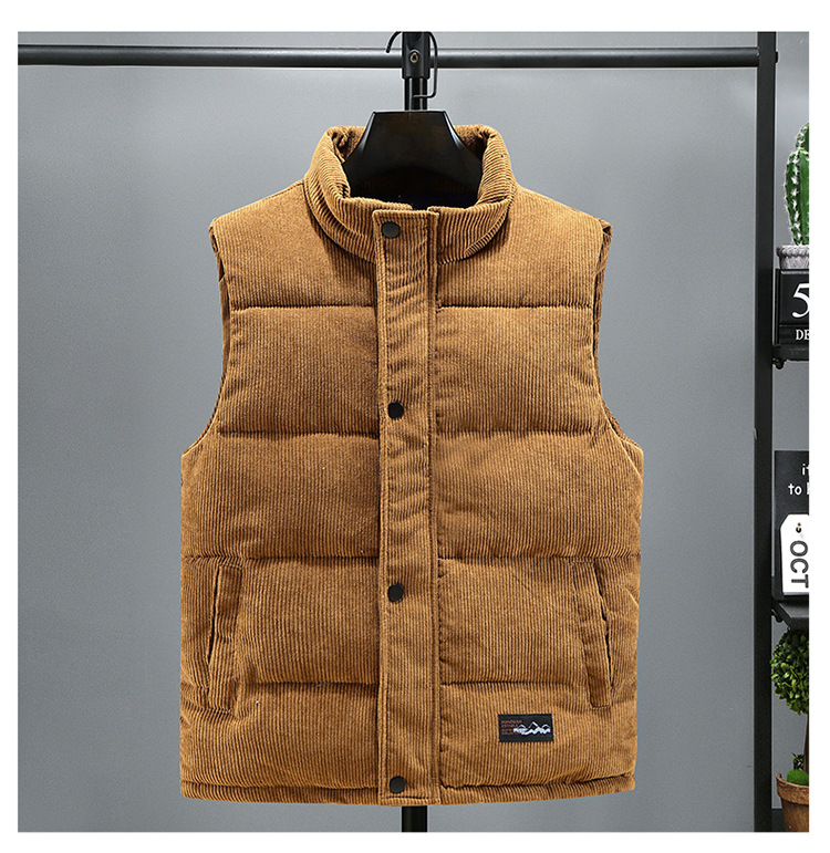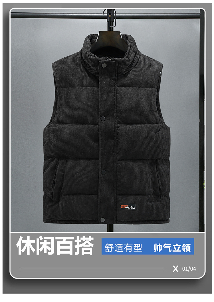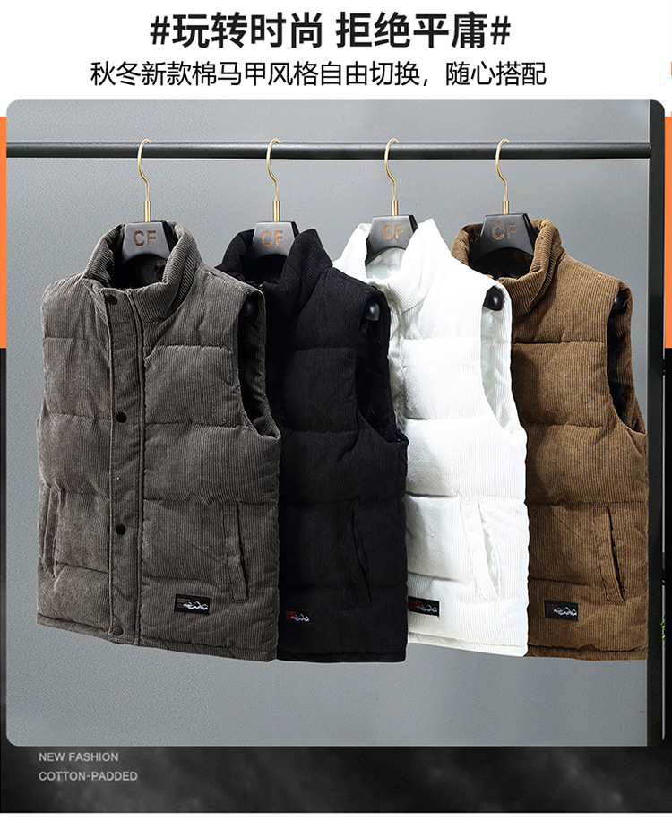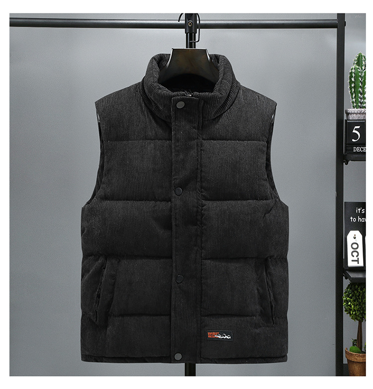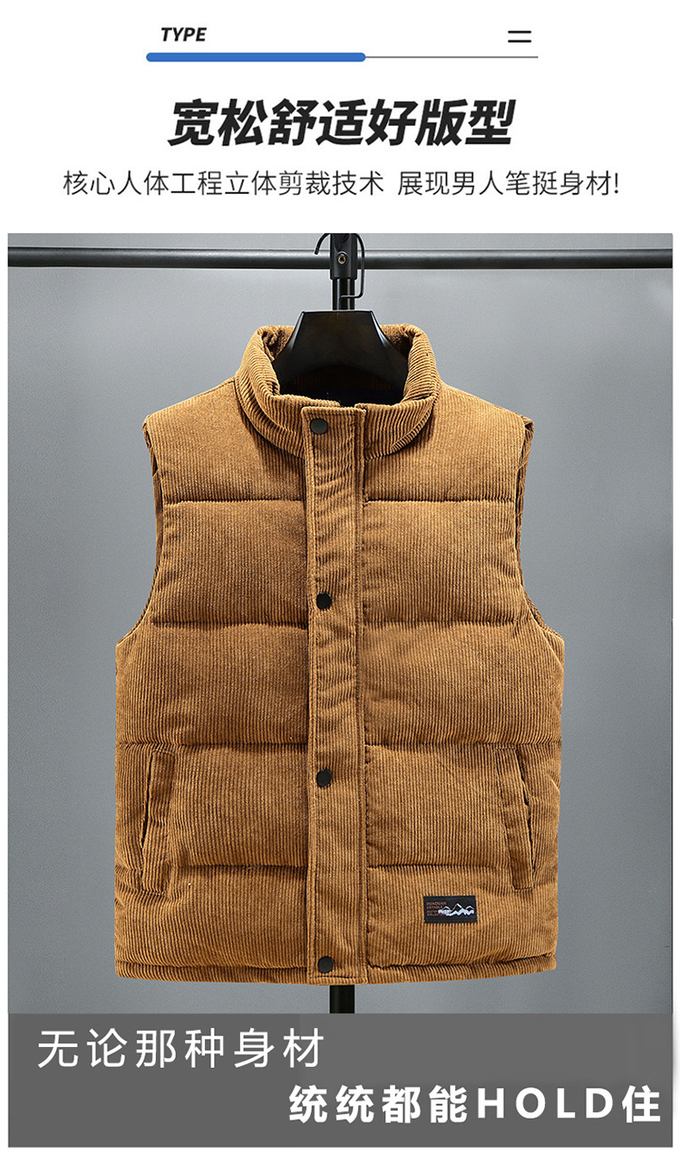 灯芯绒男士马甲羽绒棉背心秋冬潮牌坎肩男加厚棉情侣外套棉衣批发