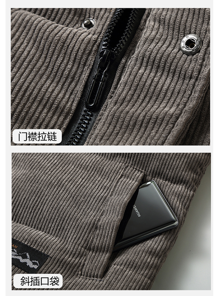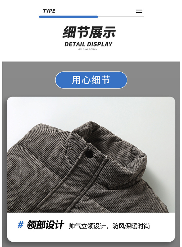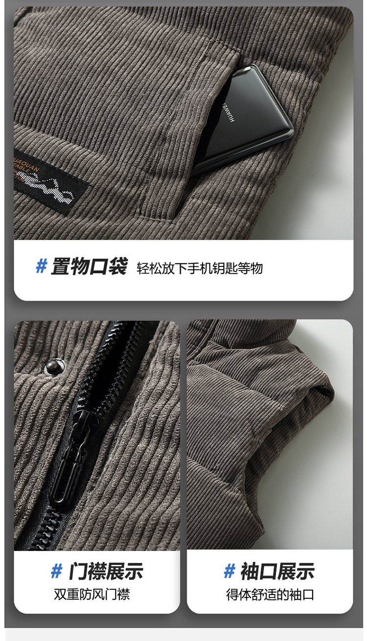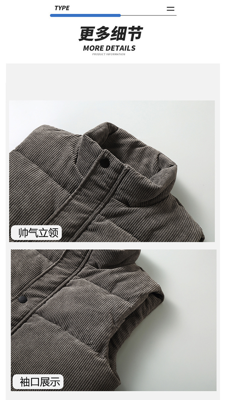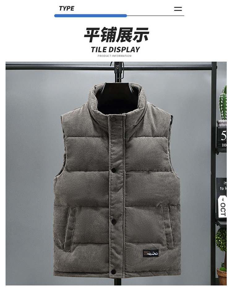 灯芯绒男士马甲羽绒棉背心秋冬潮牌坎肩男加厚棉情侣外套棉衣批发