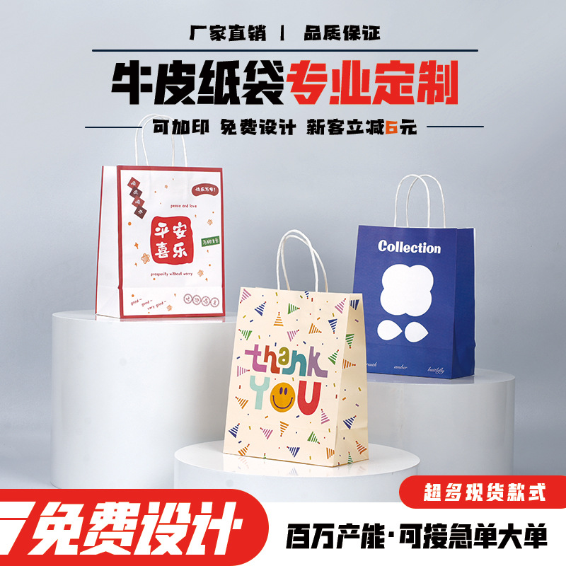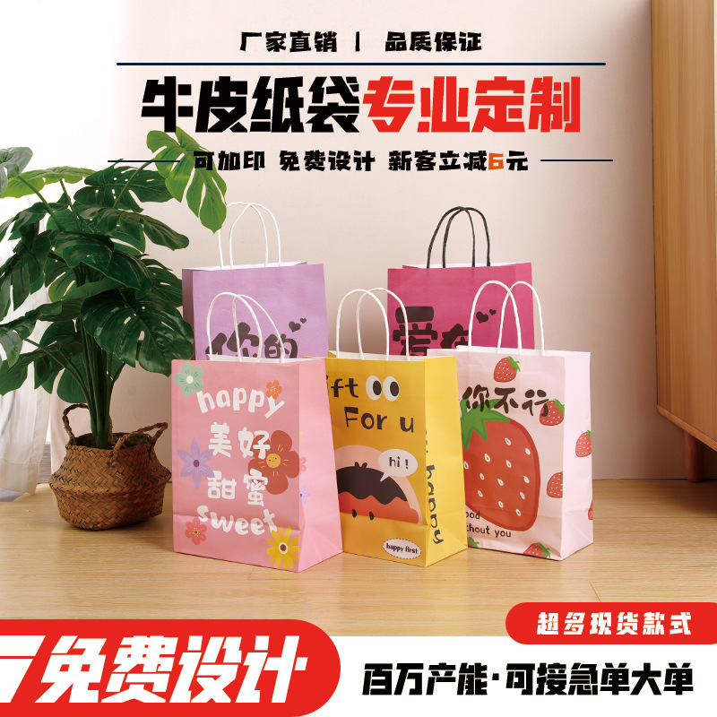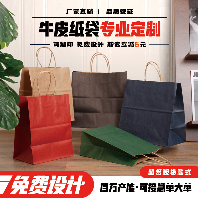 牛皮纸袋现货批发礼品包装袋海底捞同款手提袋印logo外卖打包定制
