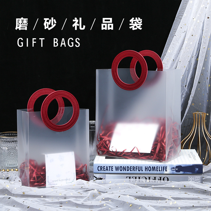 磨砂礼品袋透明手提ins礼物伴手礼袋子PVC婚礼喜糖塑料袋包装批发
