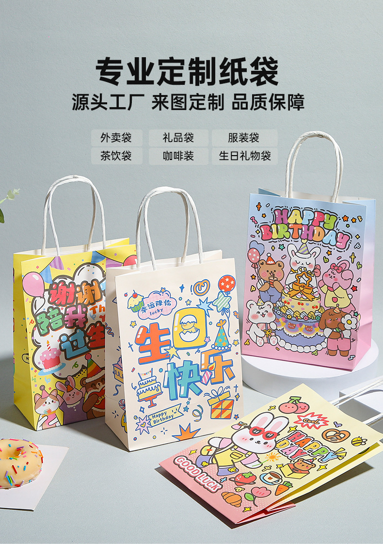 牛皮纸袋伴手礼手提袋生日礼品打包袋包装袋祝福新年圣诞节礼品袋