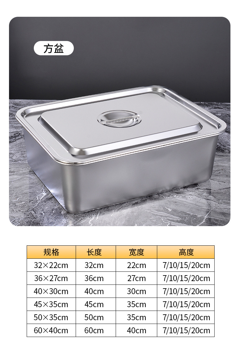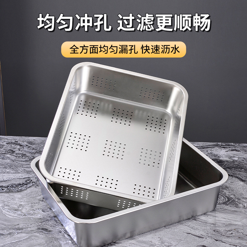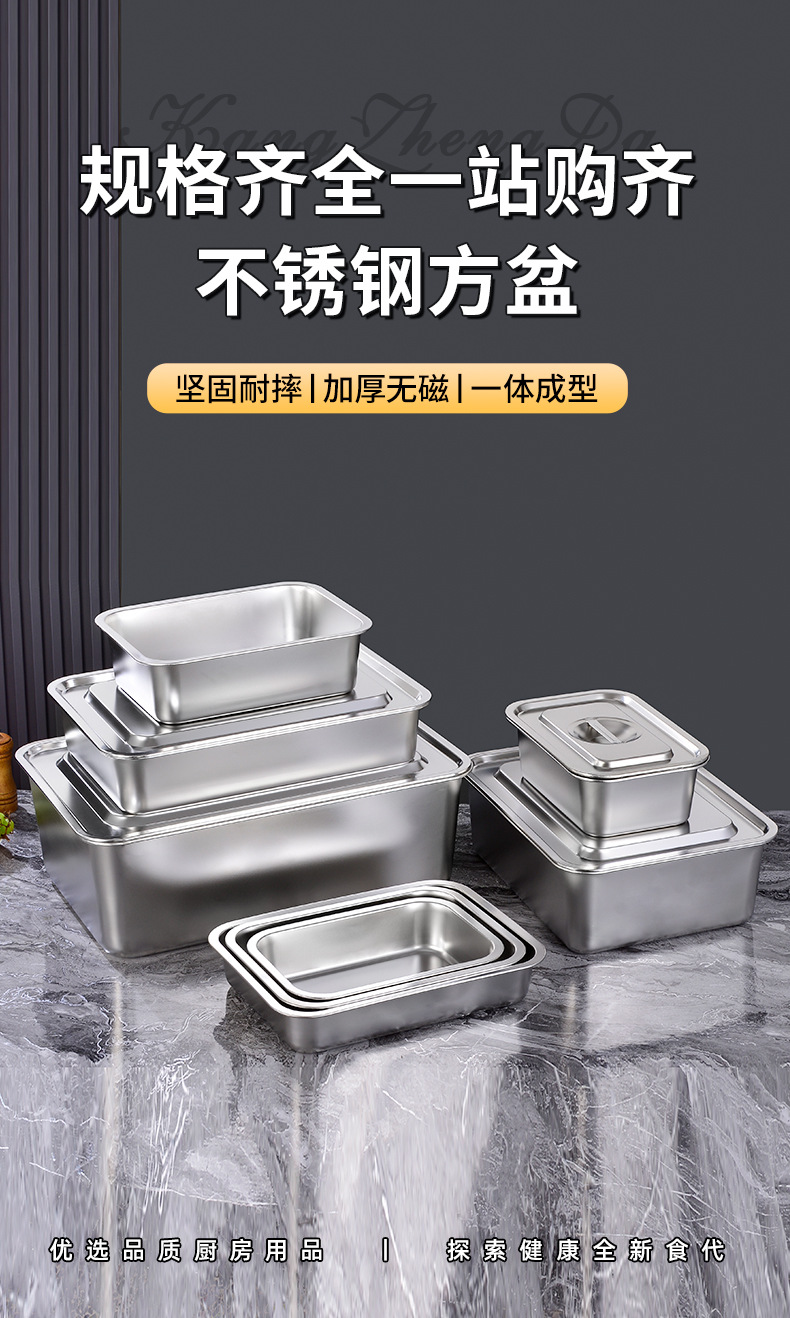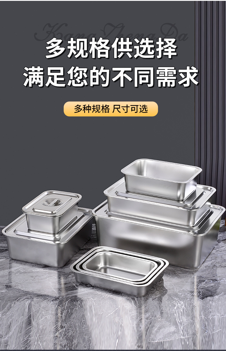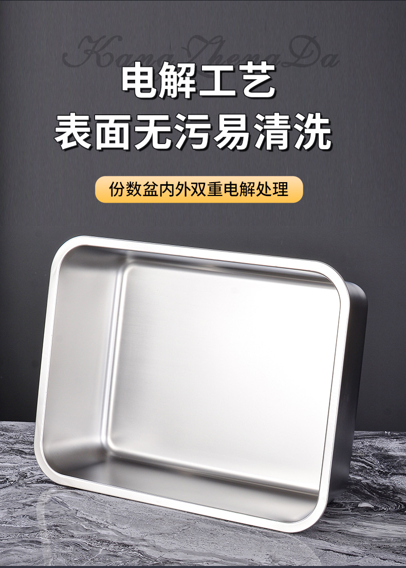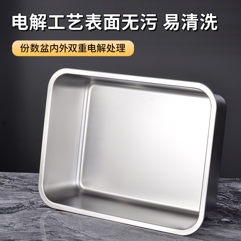 定制不锈钢加深方盘自助快餐带盖加厚冲孔大号猫砂盆食堂份数托盘