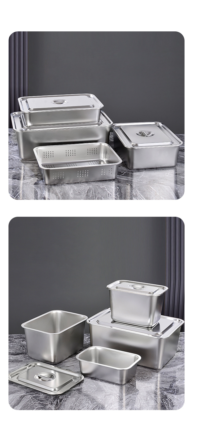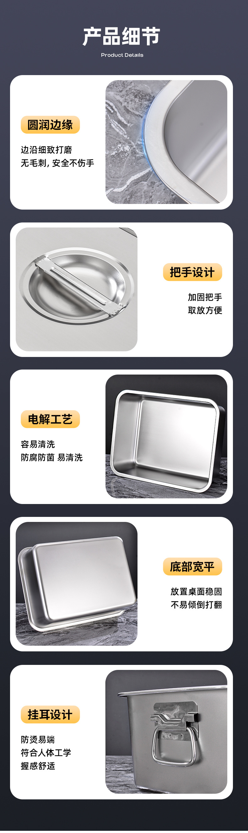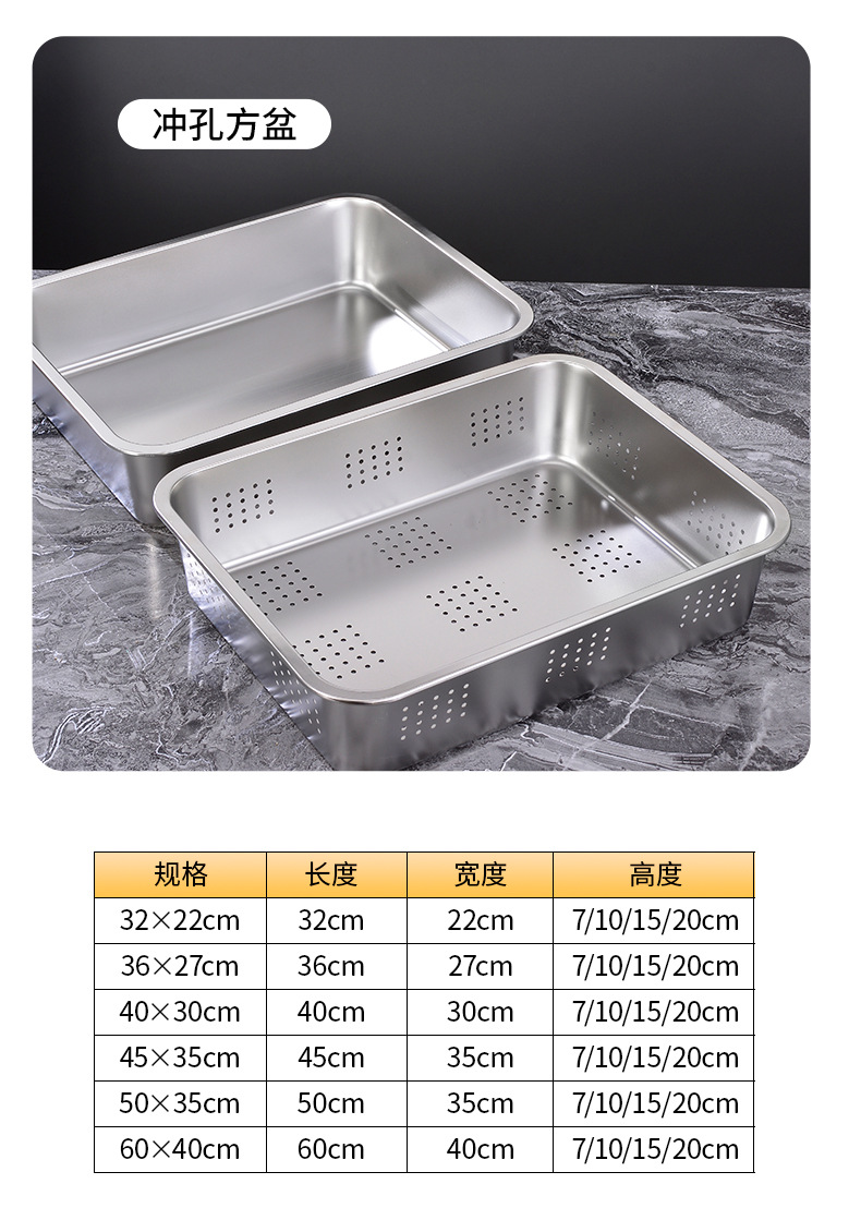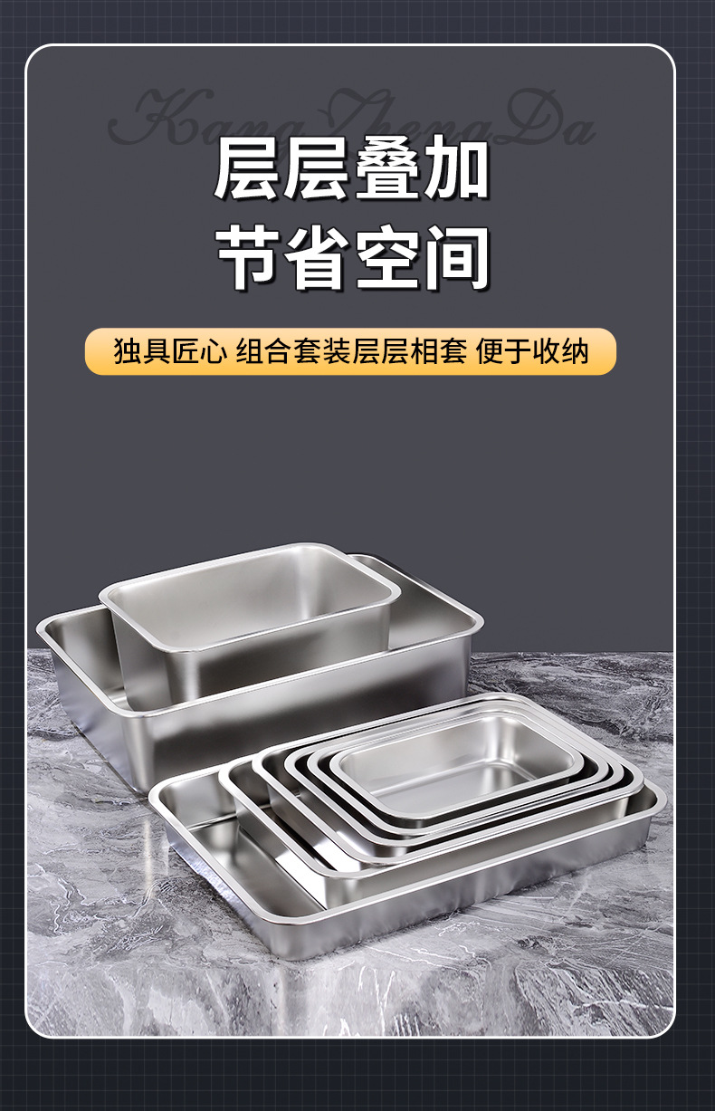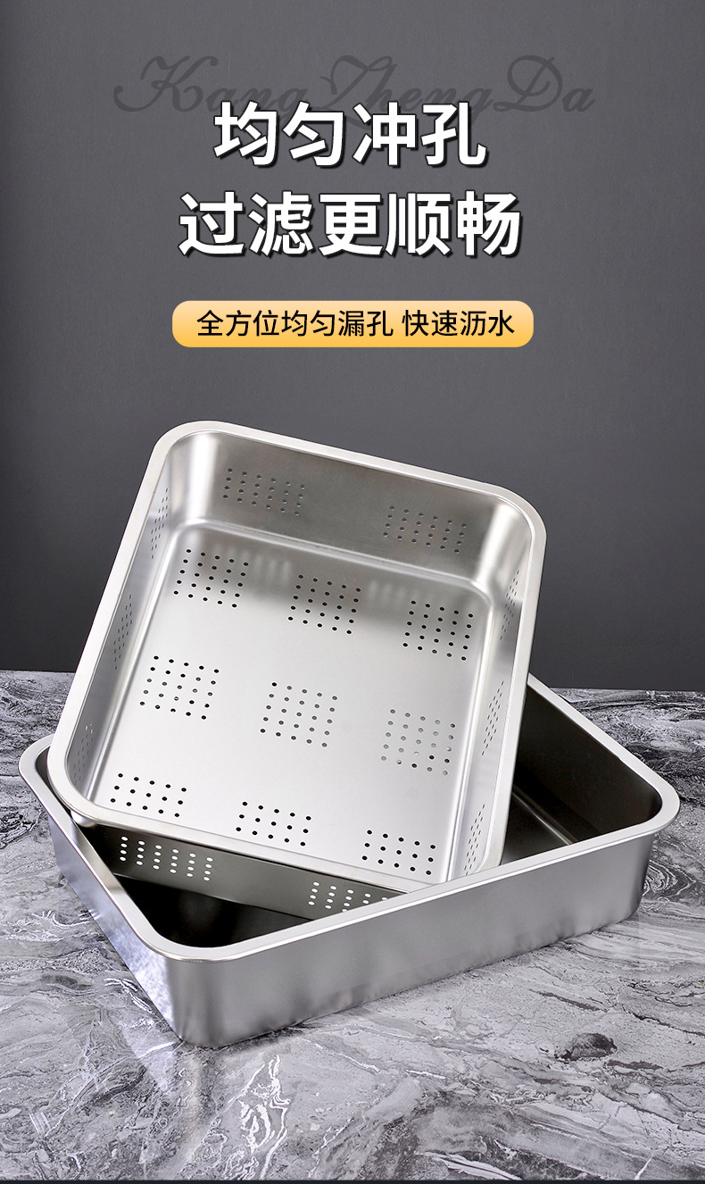 定制不锈钢加深方盘自助快餐带盖加厚冲孔大号猫砂盆食堂份数托盘