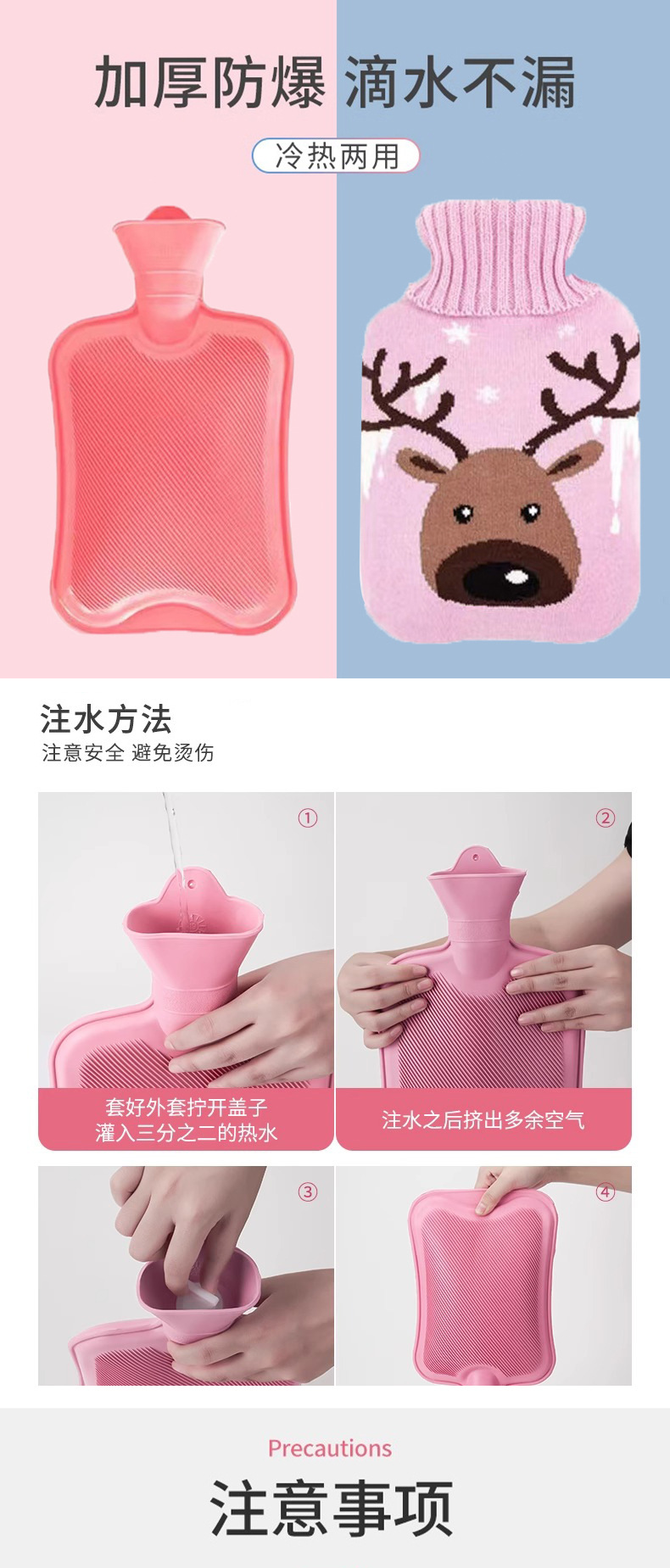 热水袋暖肚子注水式学生便携式绒布暖手袋大号暖水袋暖手宝保温