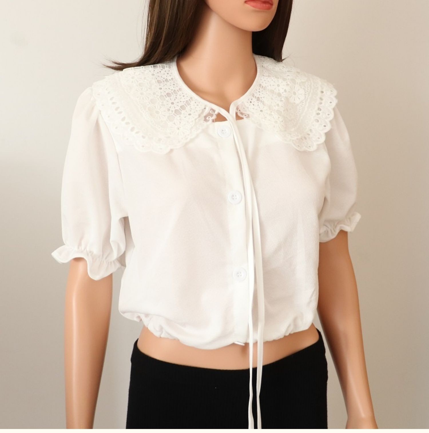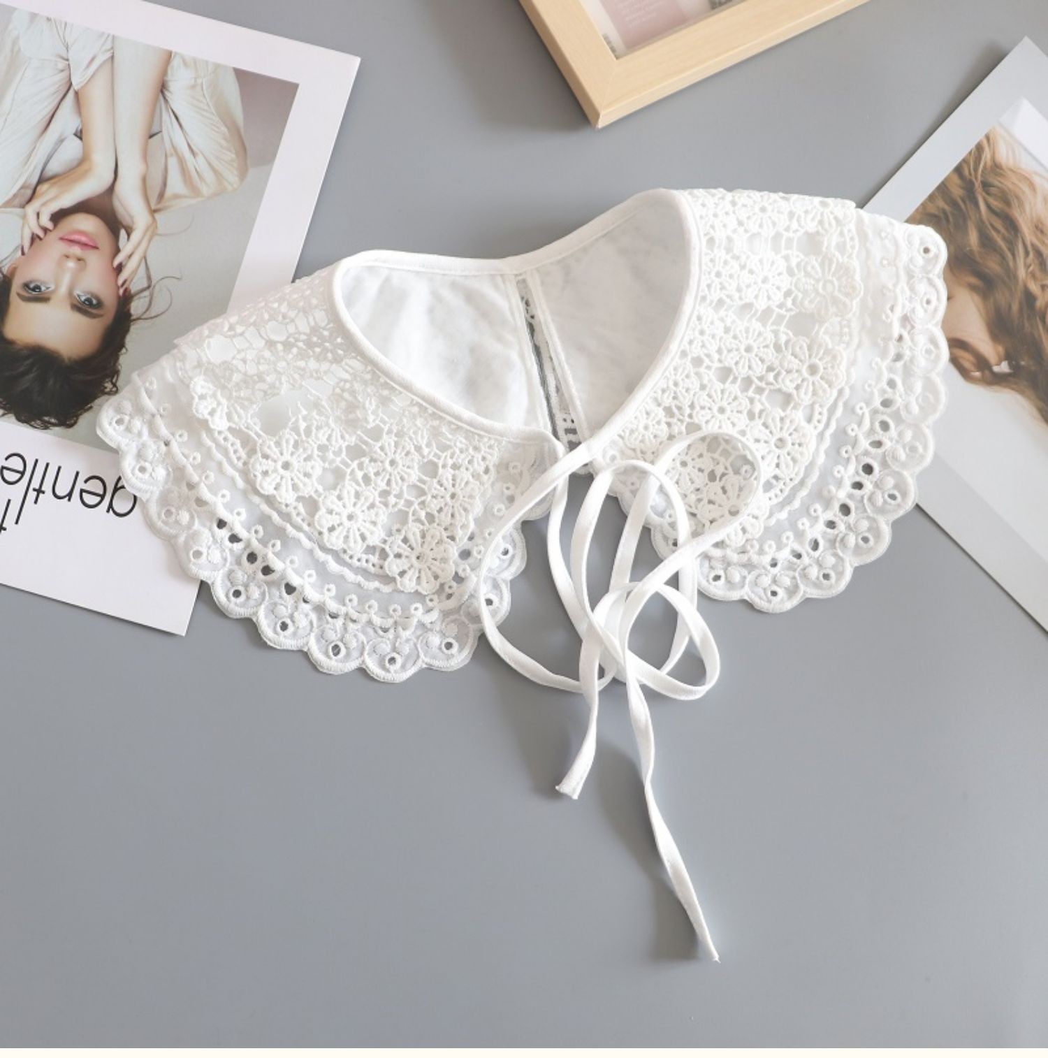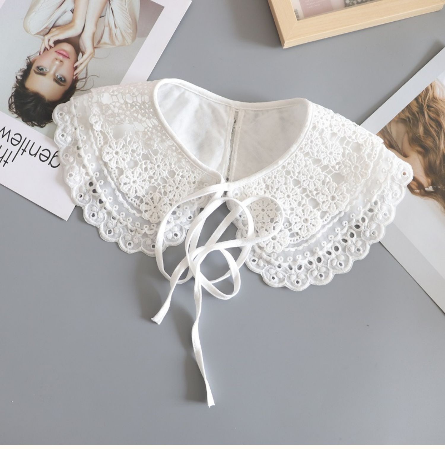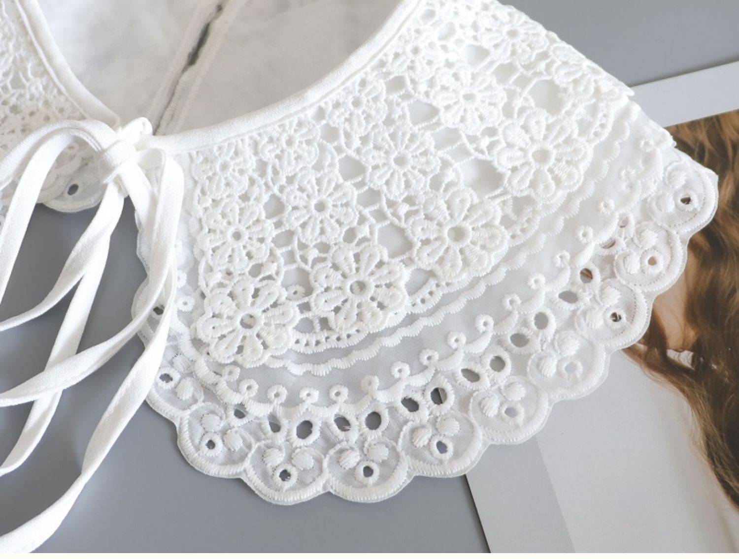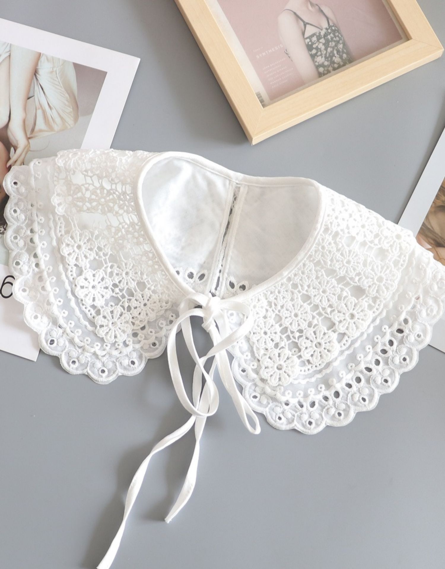 春夏纯色百搭镂空系带披肩女配裙子荷叶边外搭装饰假领子