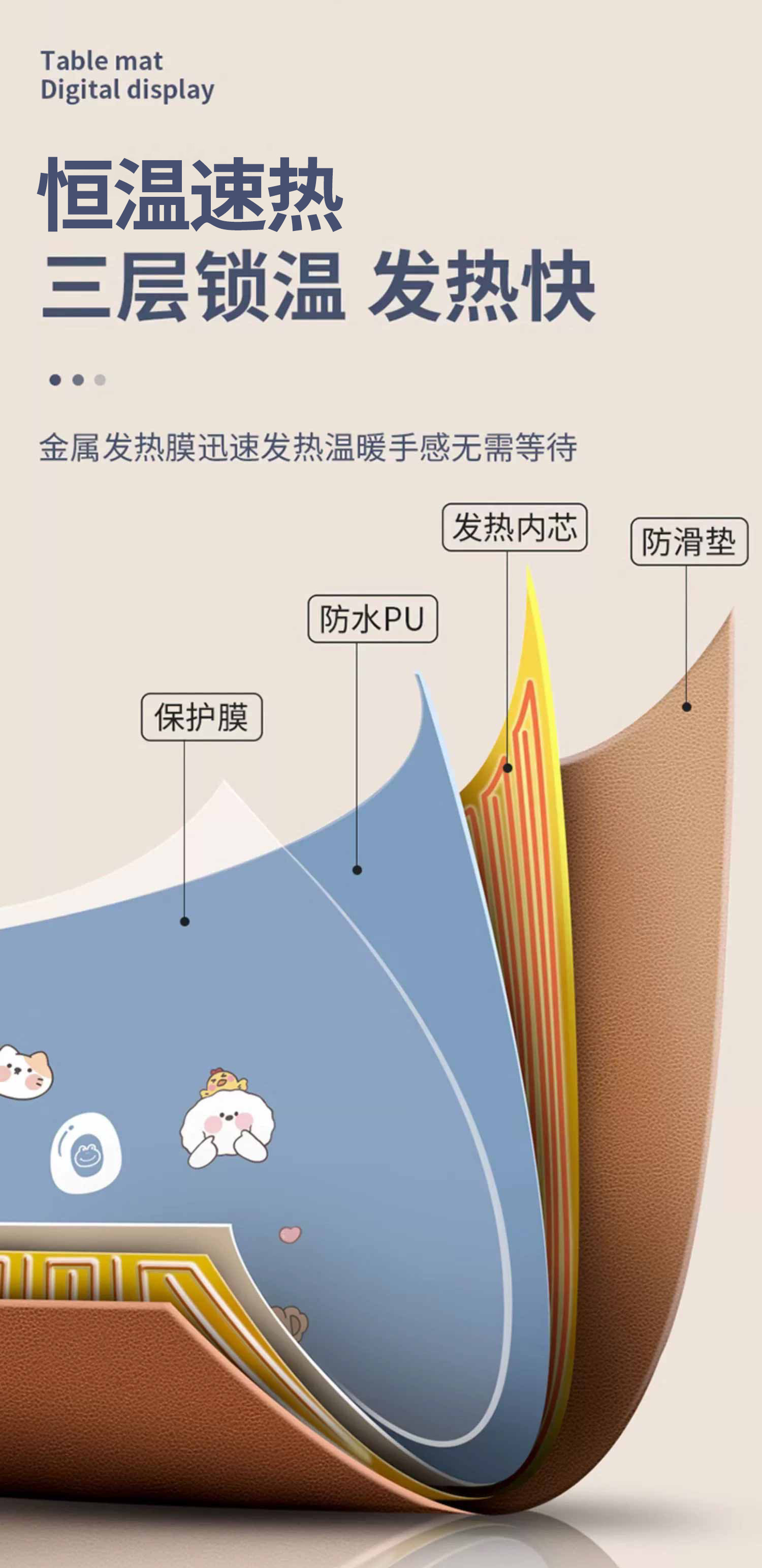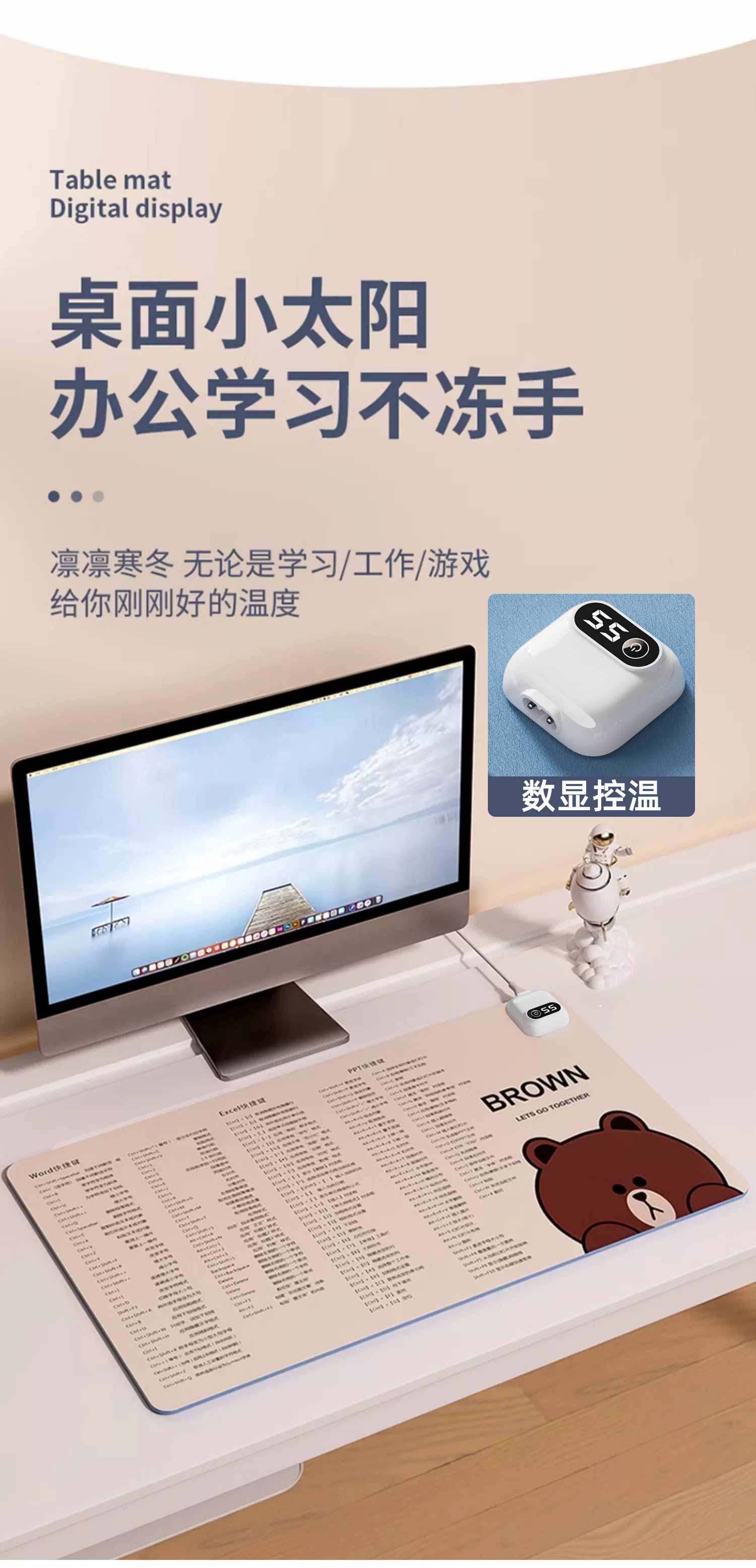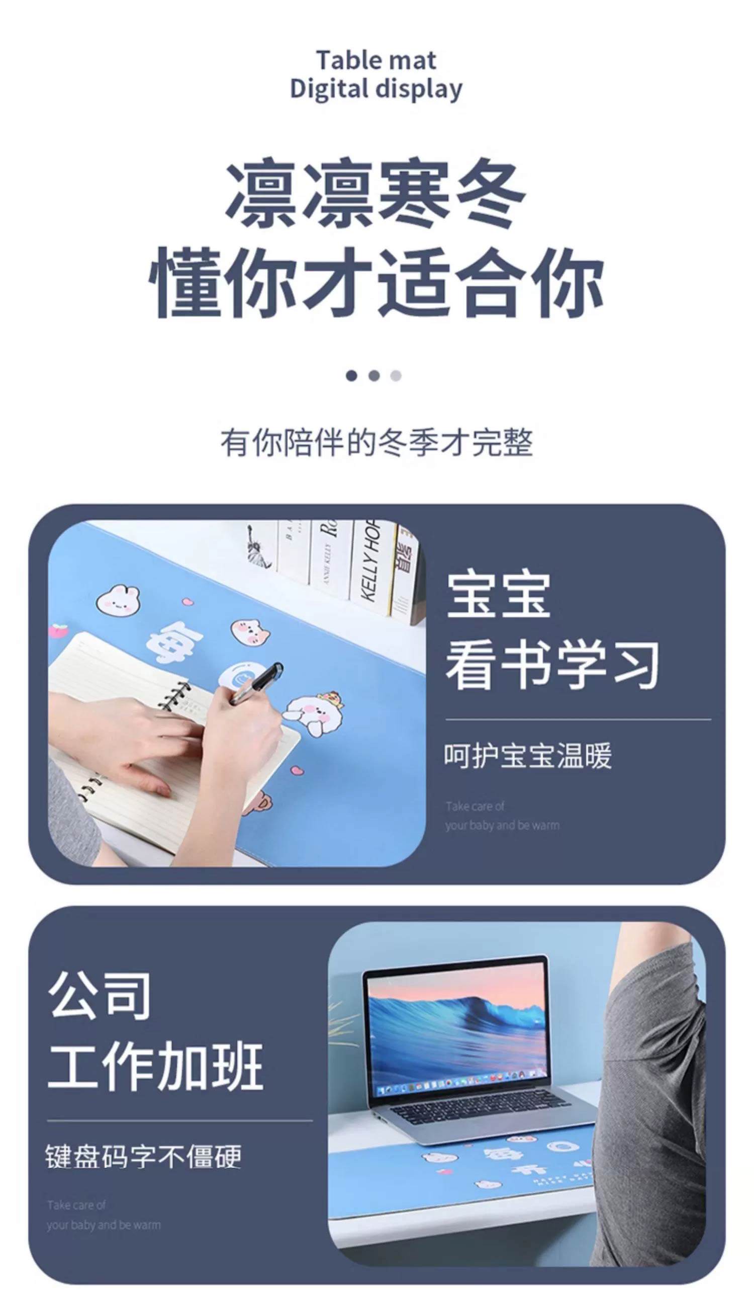 加热鼠标垫厚款办公室超大电脑桌面防水桌垫宿舍写作业暖桌垫