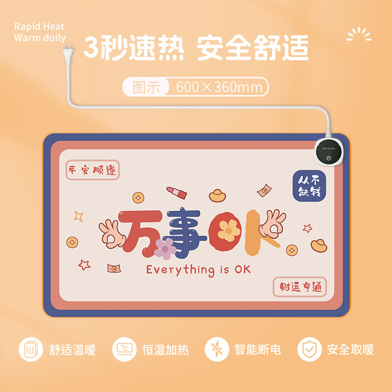 暖桌垫加热桌垫发热鼠标学习办公写作业冬天桌面暖手加热垫