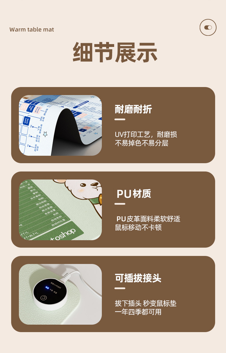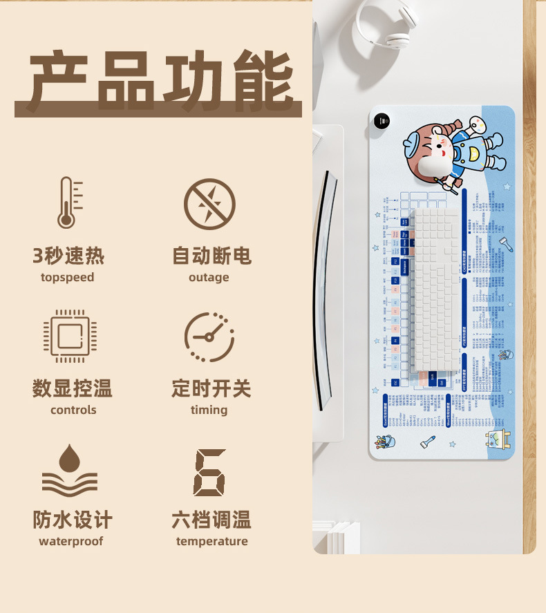 加热鼠标垫大号办公室桌上暖垫冬季加热垫学生写字暖手卡通暖桌垫