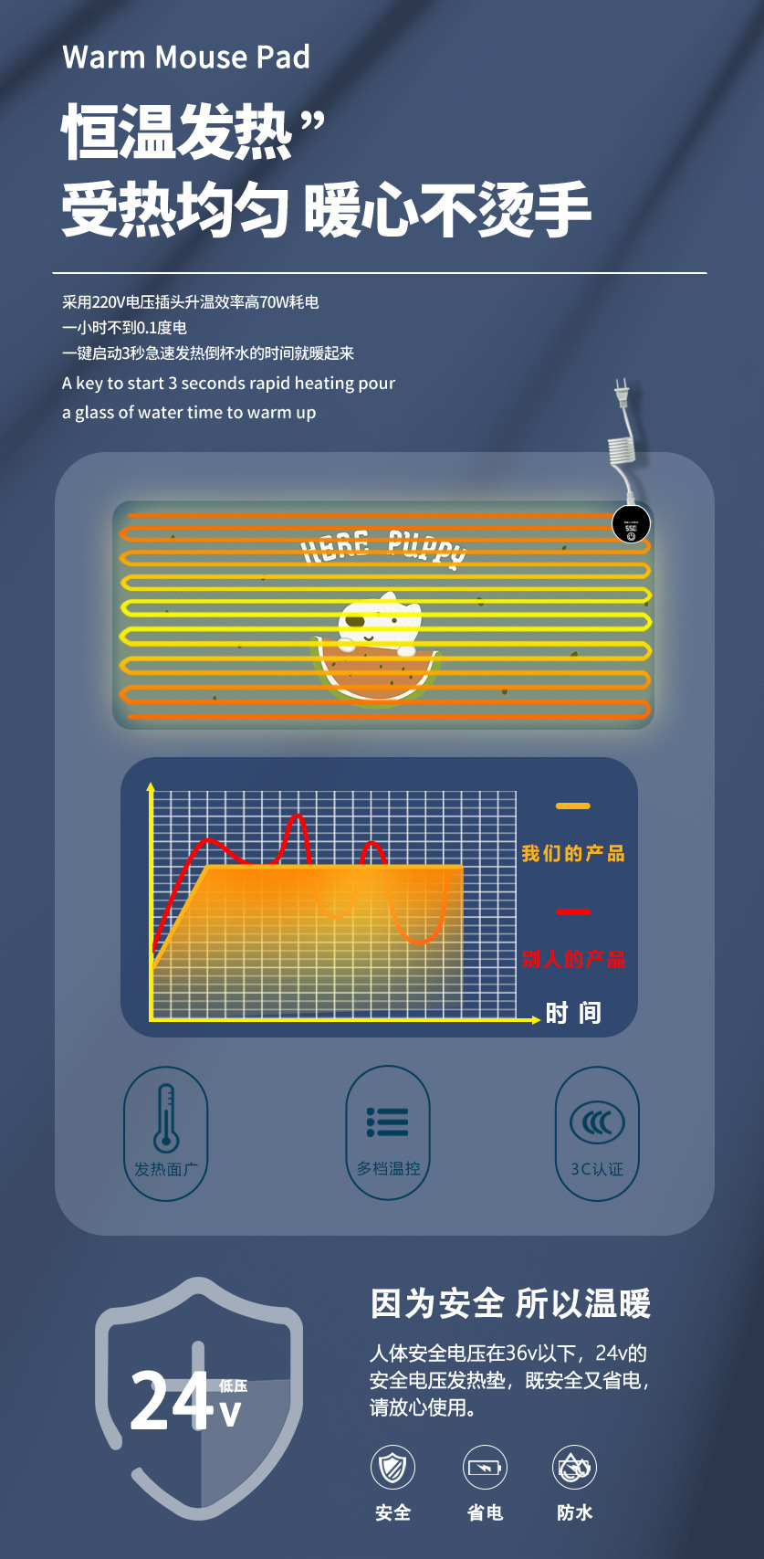 2025款 加热鼠标垫 卡通发热暖桌垫办公电脑桌面发热垫加大暖手垫