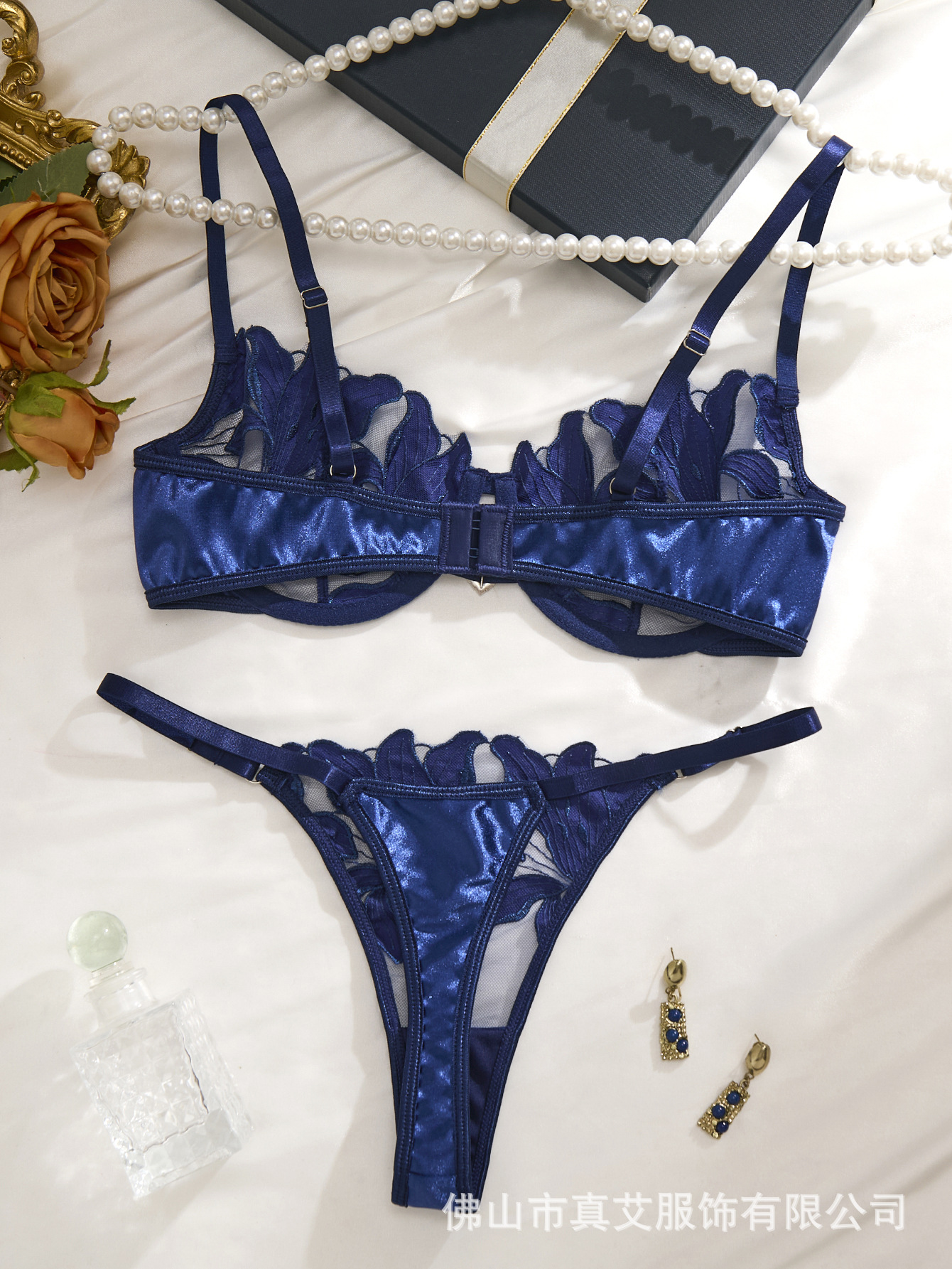 Z欧美爆款大码情感趣味内衣透明花朵刺绣性感纯欲情趣内衣套装31