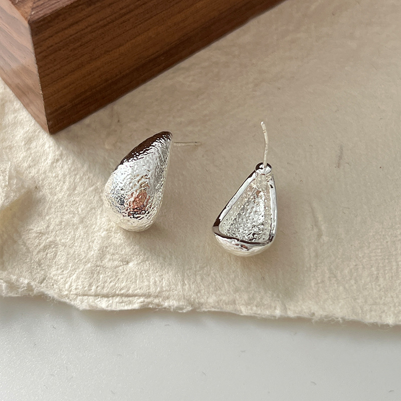 韩国磨砂拉丝银针简约小众半圆金属耳环日常百搭气质圆球潮耳钉女
