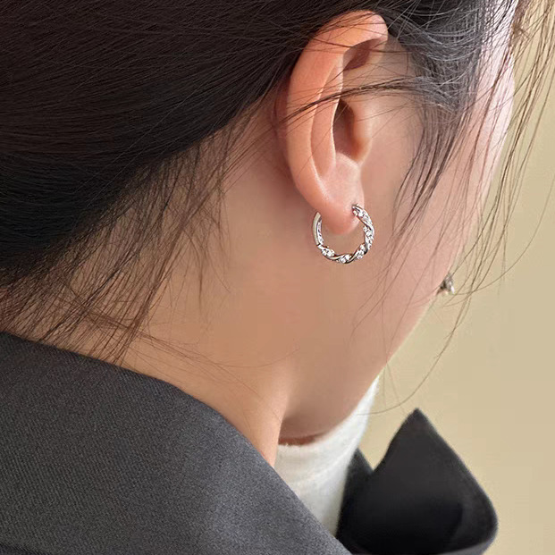 银色耳圈耳环圈圈女独特耳钉2024新款爆款素圈耳饰轻奢高级感耳扣