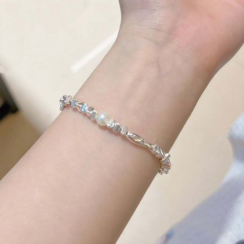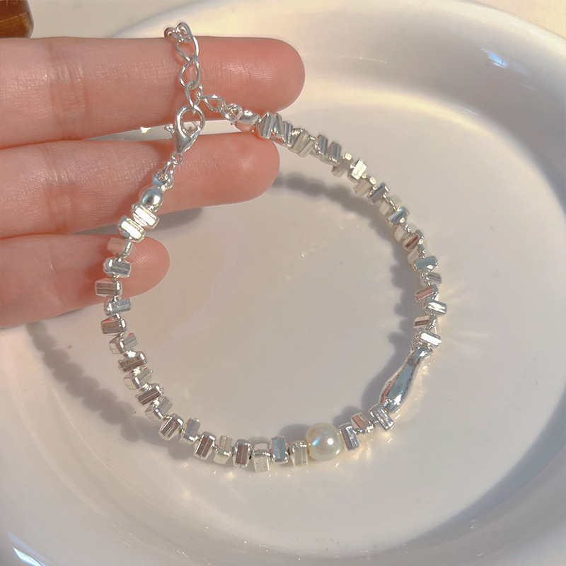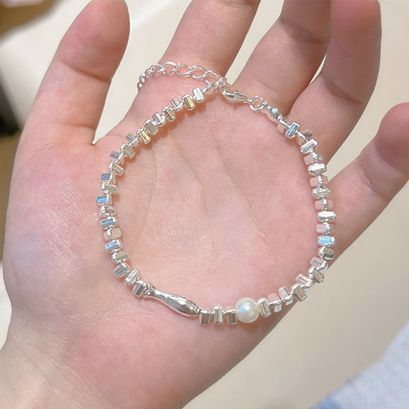 S925银轻奢高级感碎银手链女巴洛克珍珠小鱼精致手串小众设计手饰