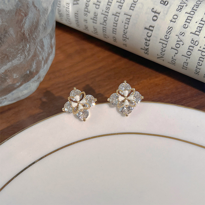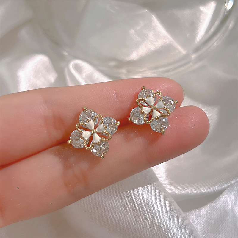 超仙水晶锆石镂空花朵耳钉S925银针高级感百搭耳饰时尚个性轻奢潮