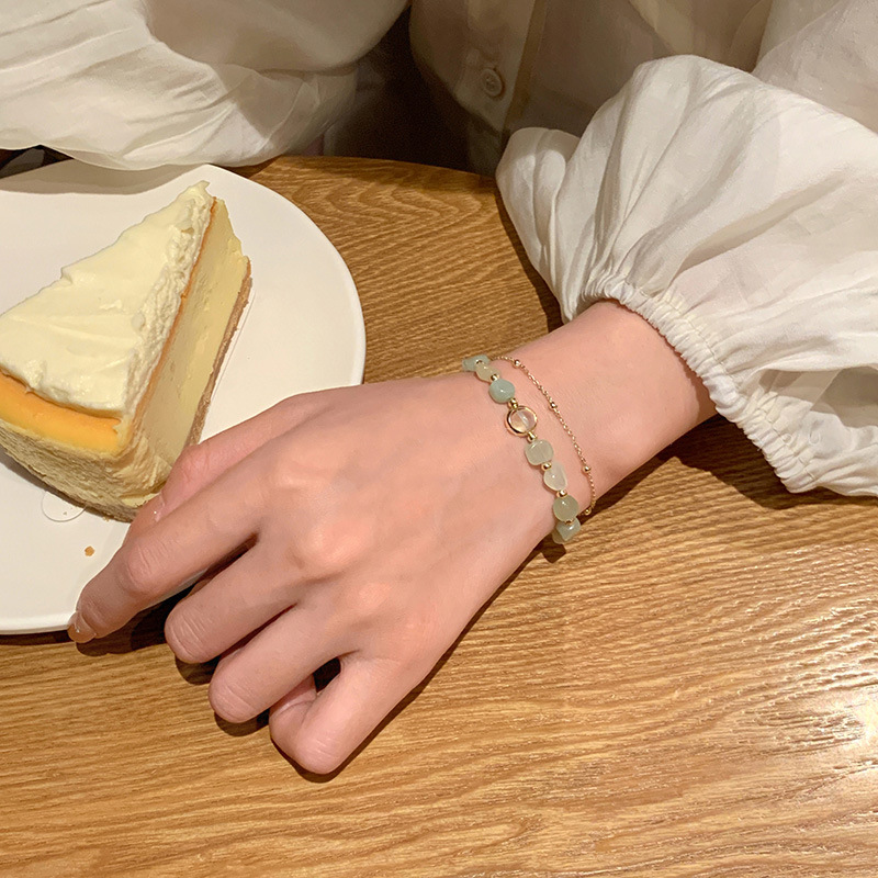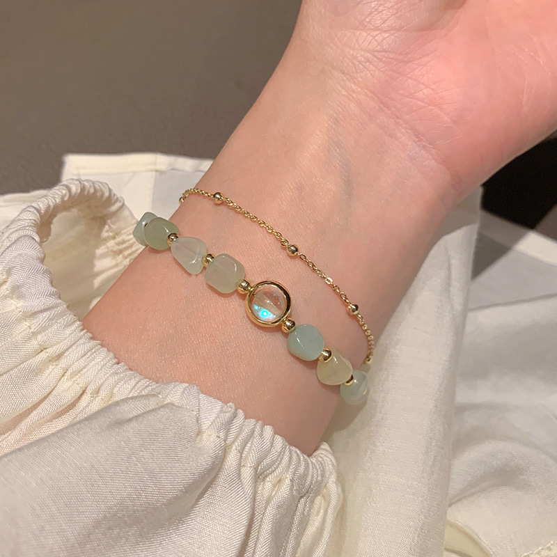 真金电镀绿石圆珠双层手链韩国小众设计感ins气质手串百搭手饰女