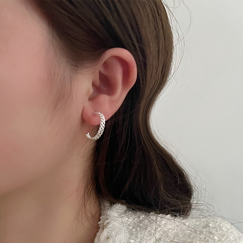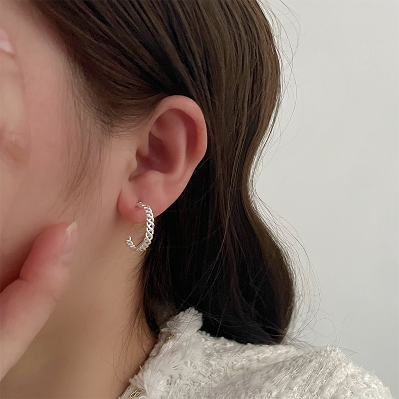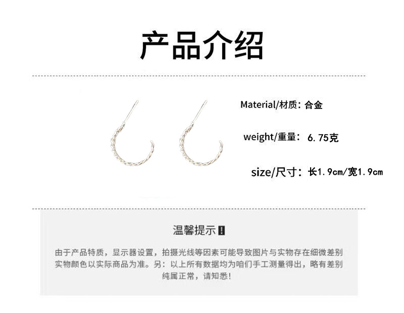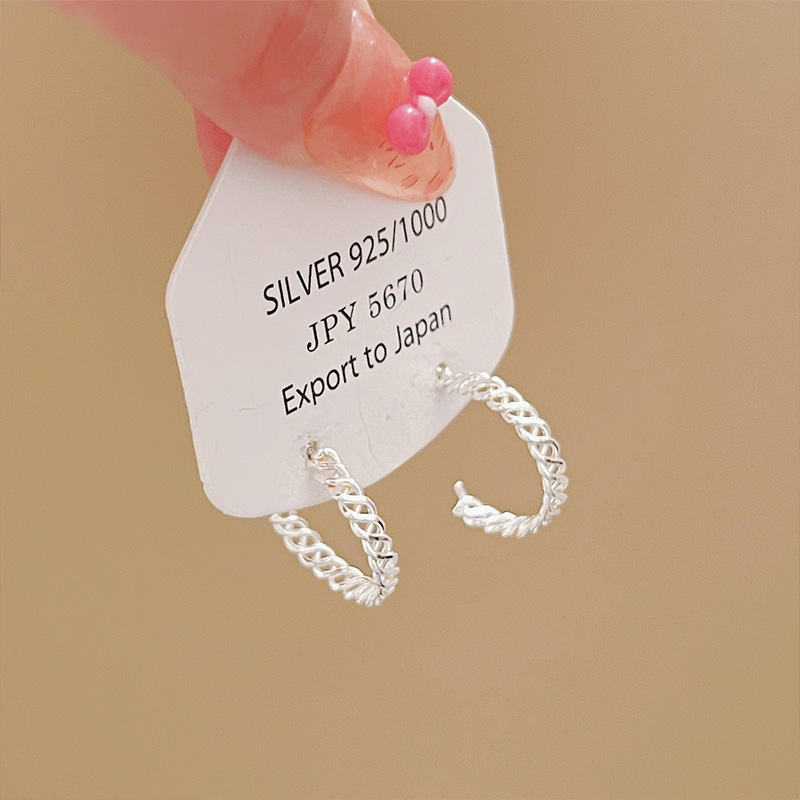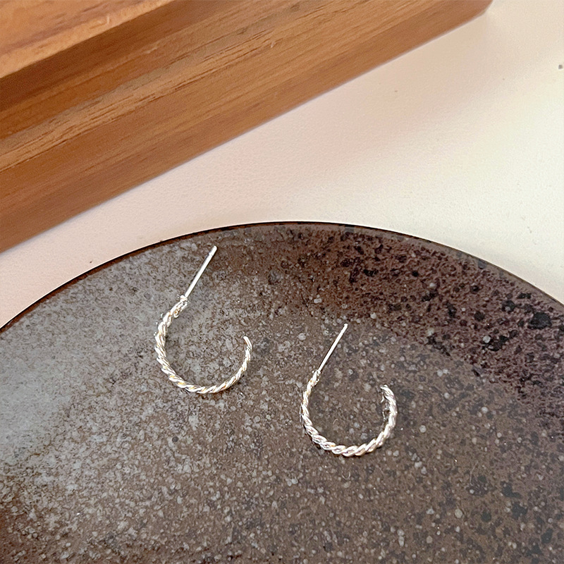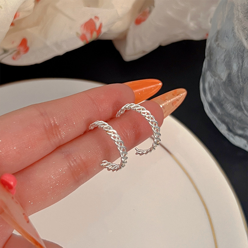 复古简约麻花金属C形耳环女s925银针高级感耳圈百搭金属风耳环女