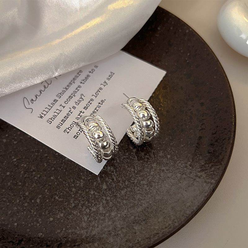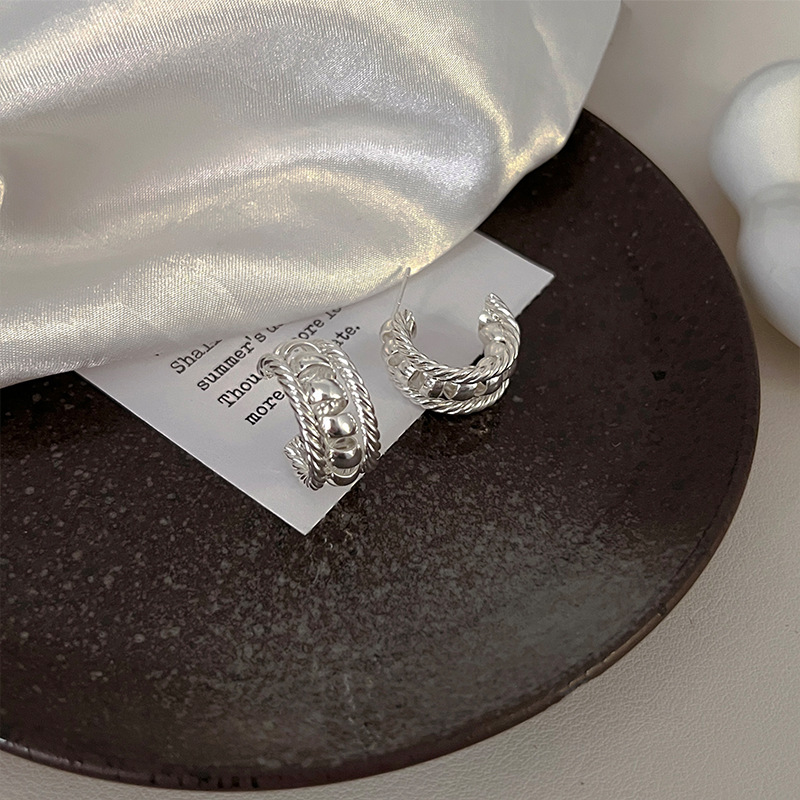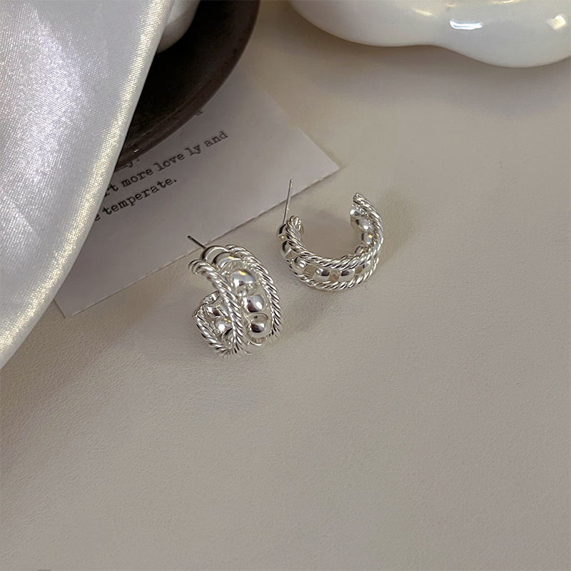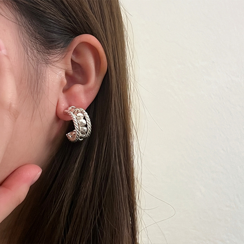 欧美复古气质银针耳环女2024新款潮个性高级设计感耳钉麻花耳饰女