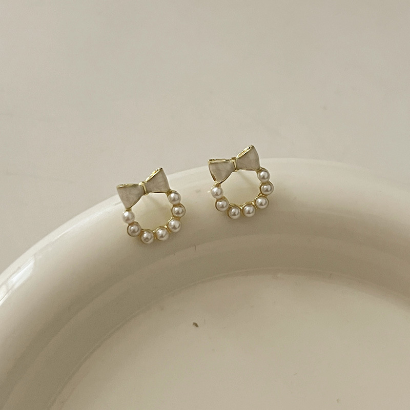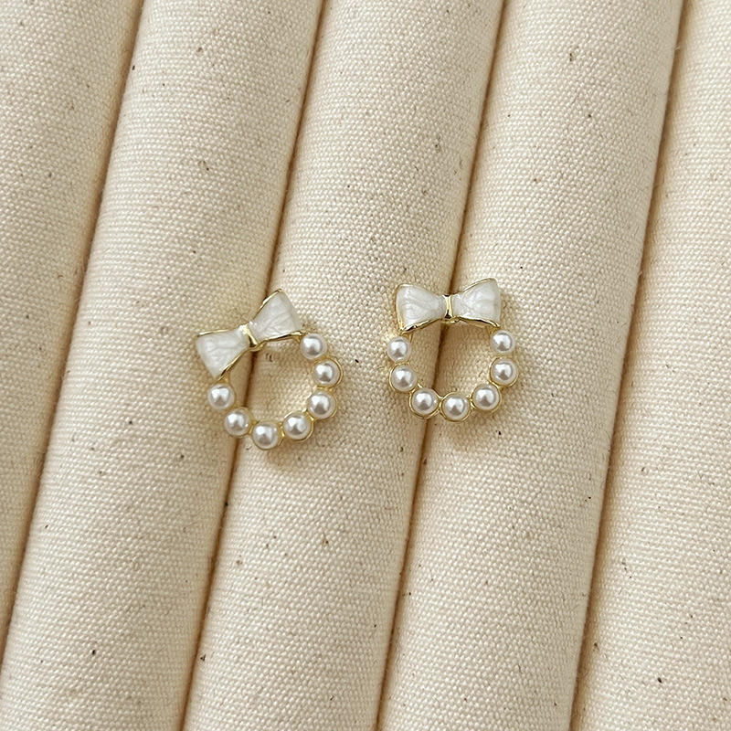 温柔蝴蝶结耳钉925银针碎贝壳珍珠圆形小巧精致耳环耳钉女夏季新