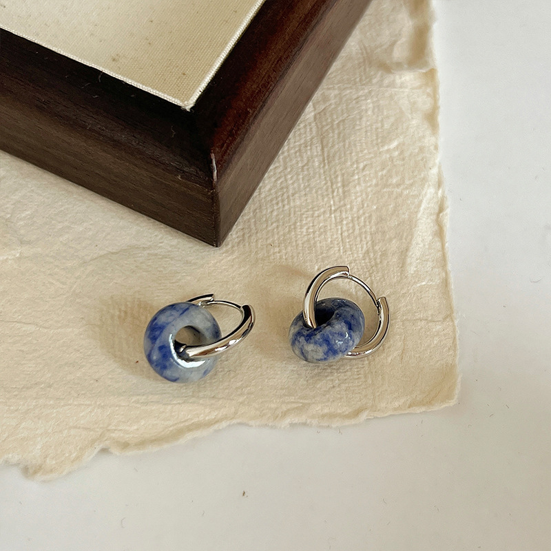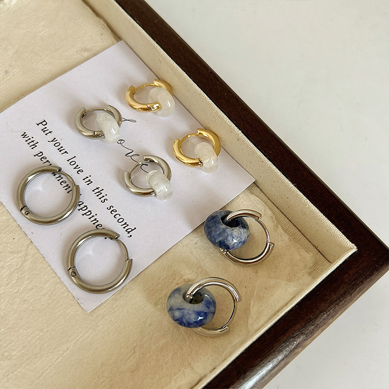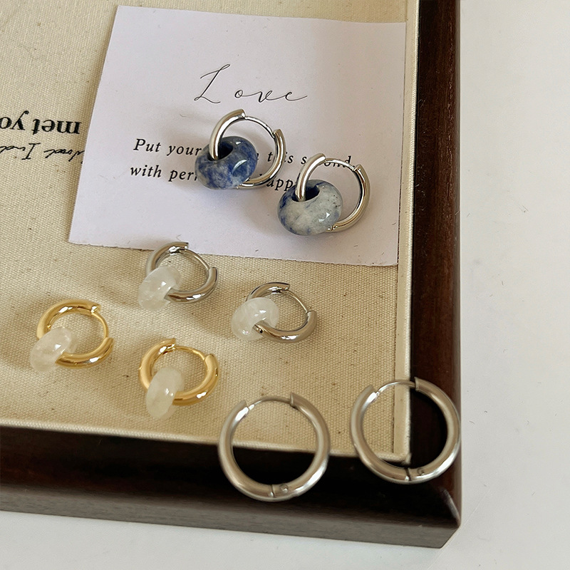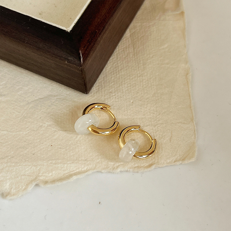 2023新款潮天然宝石复古贵族法式耳圈玛瑙耳环小众设计感高级耳饰