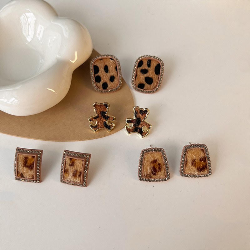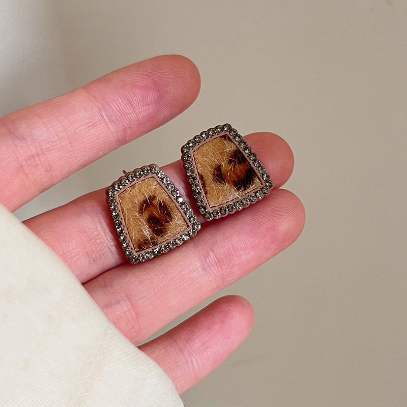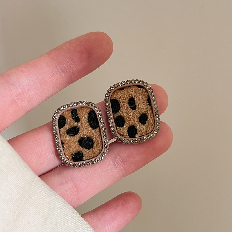 秋冬复古几何矩形豹纹耳环女韩国简约出勤百搭气质925银针耳钉