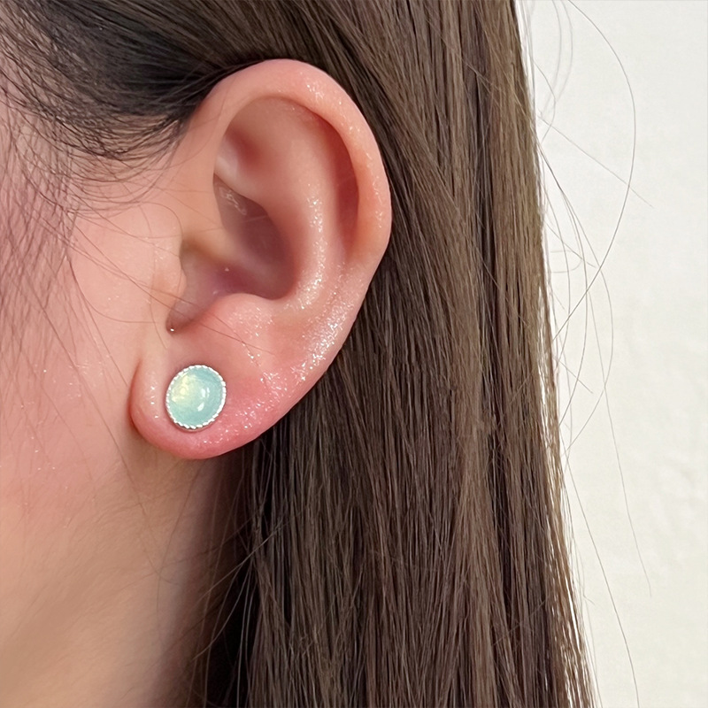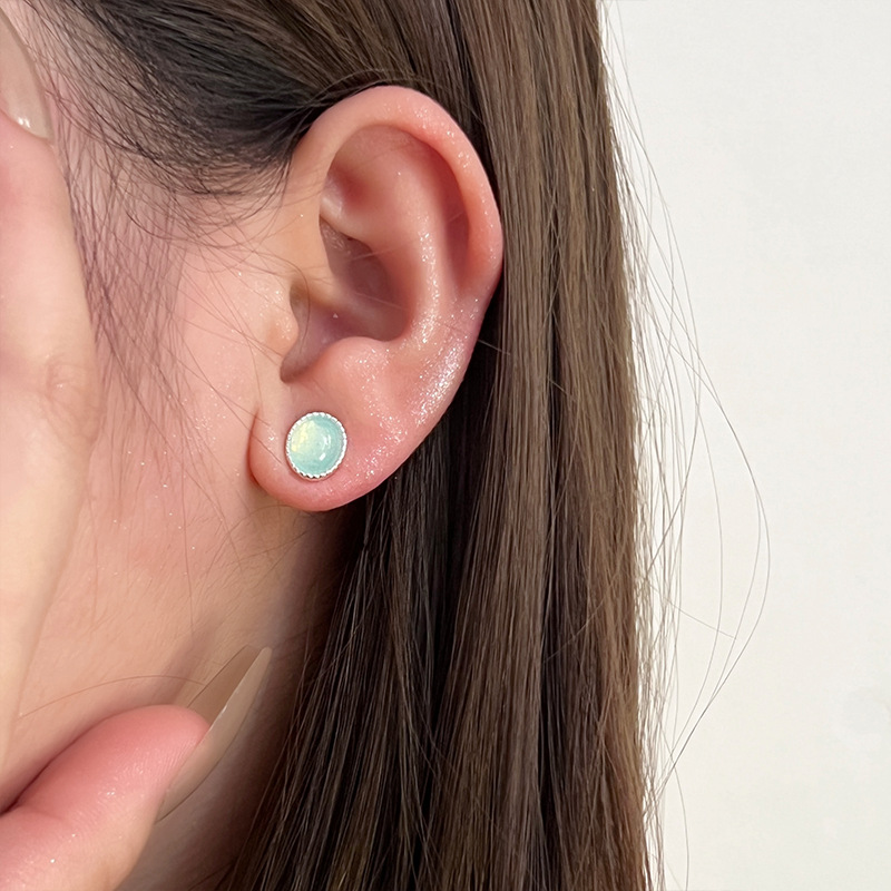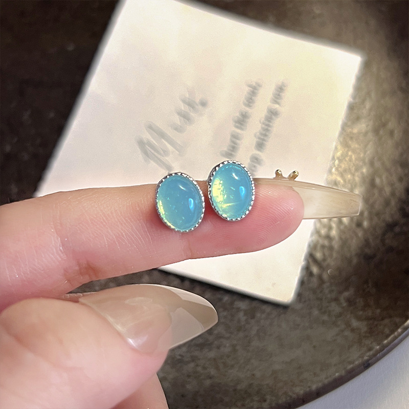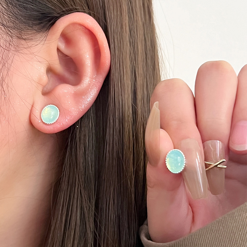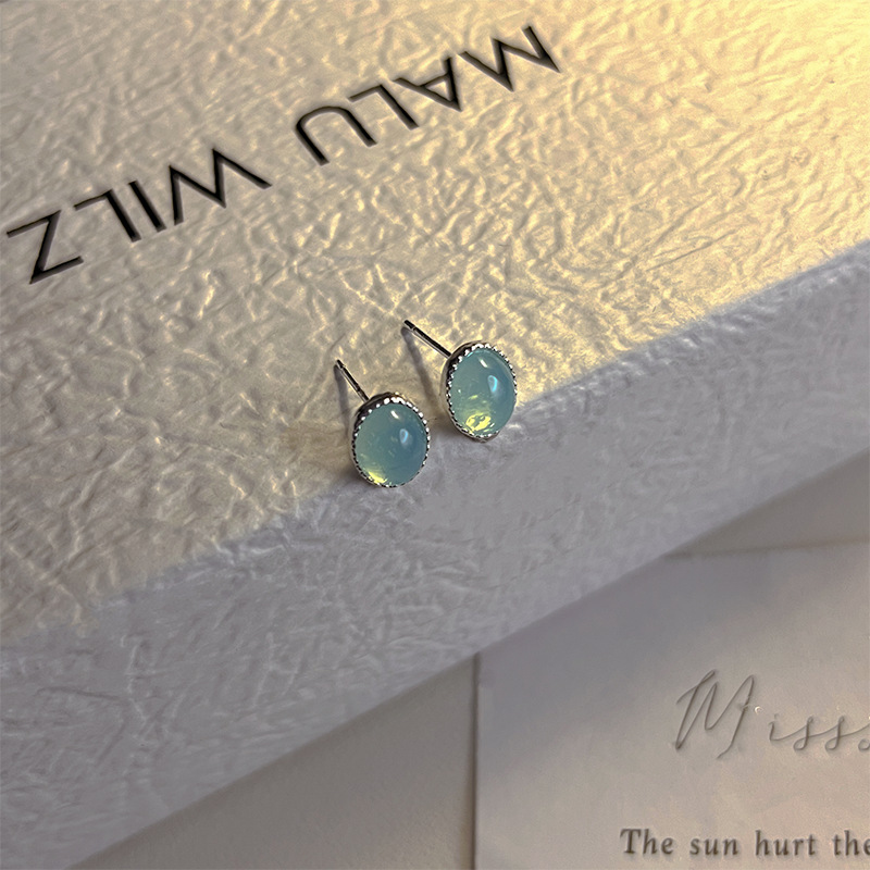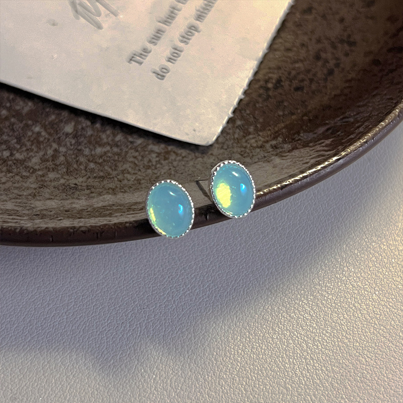 复古S925纯银针蓝色月光石耳钉精致百搭小巧新款轻奢耳饰女