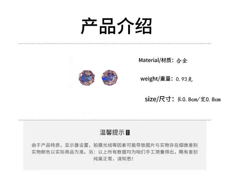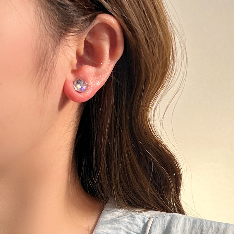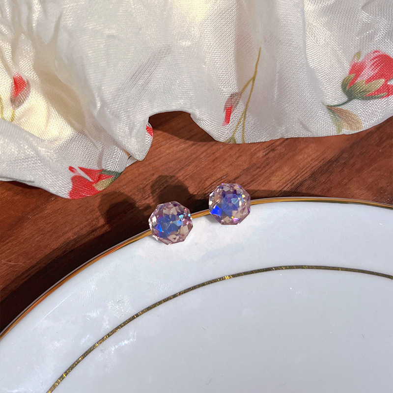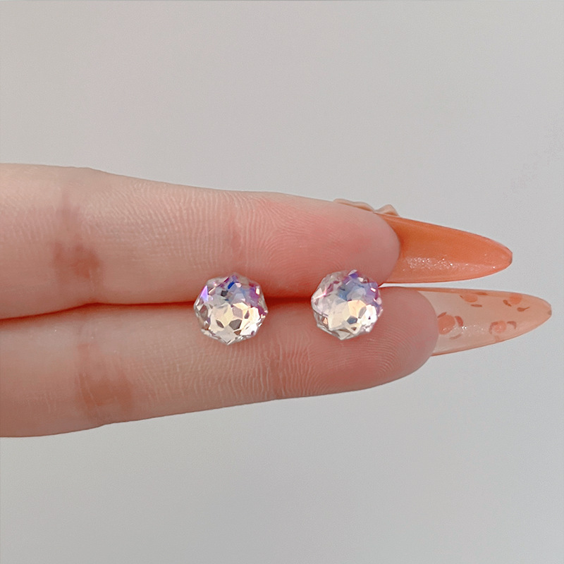 S925银针新款超闪多边耳钉耳骨钉多切面幻彩小众高级感精致百搭