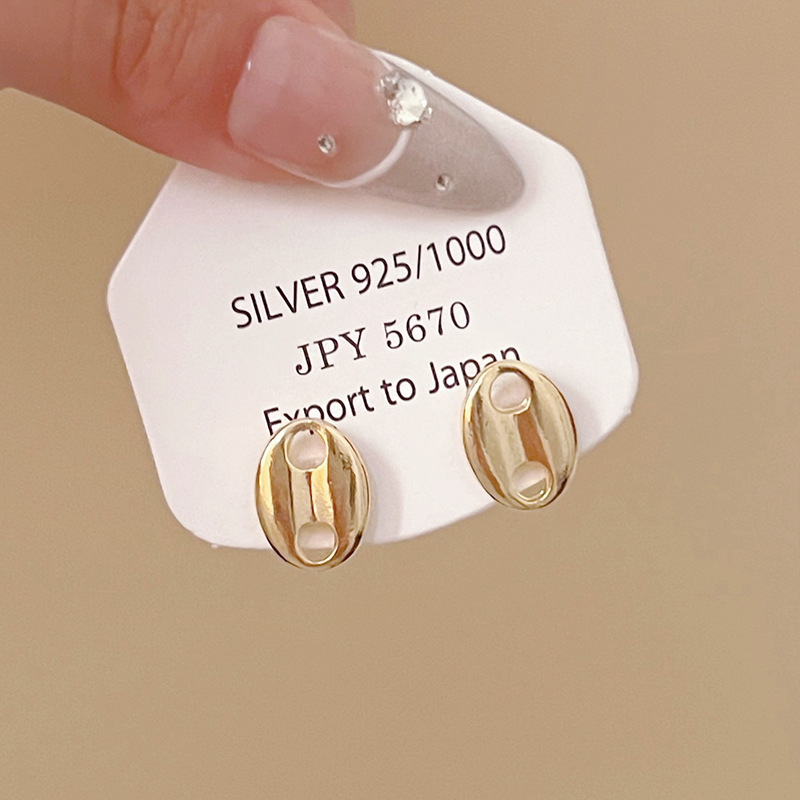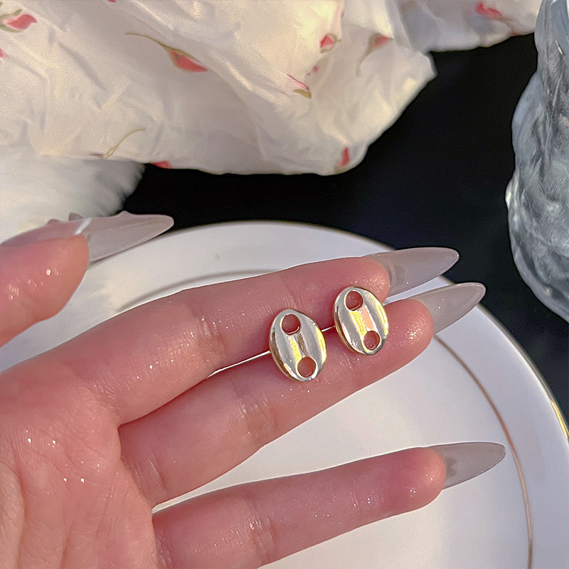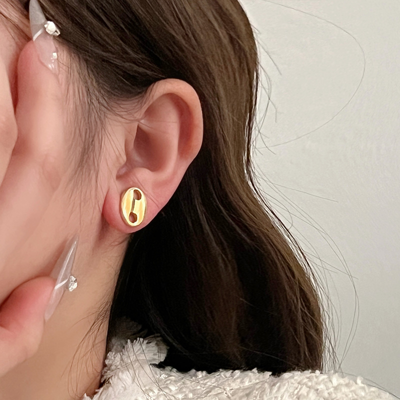 极简冷淡风几何猪鼻子耳环女个性时尚创意S925银针耳钉潮流耳饰