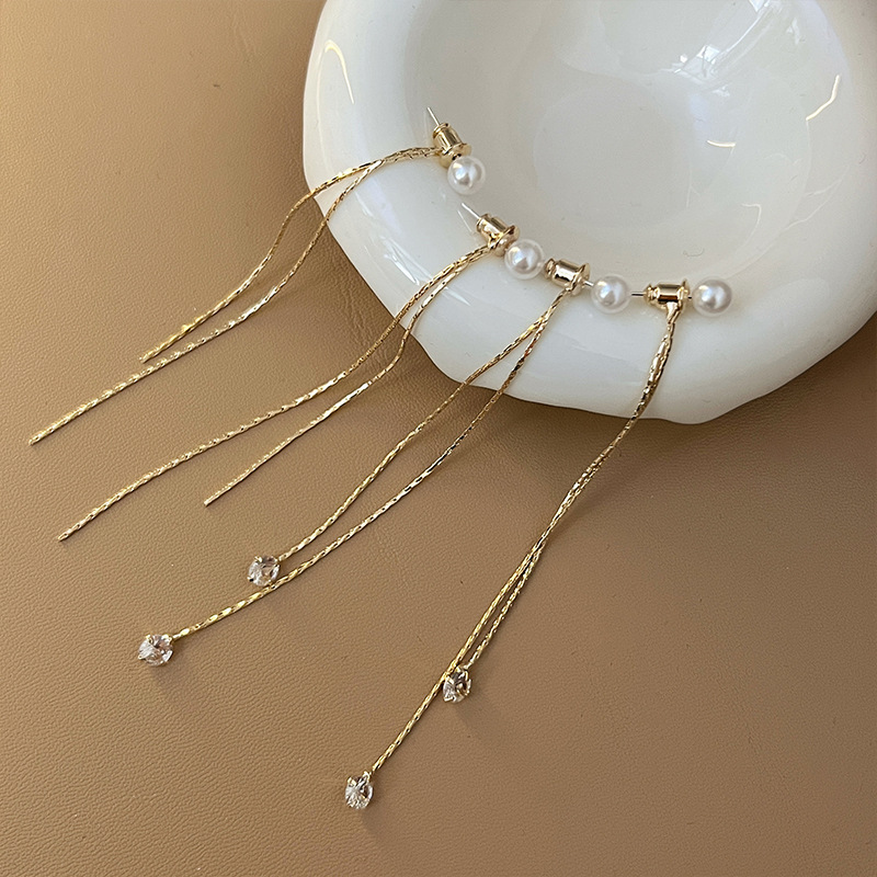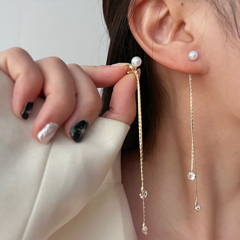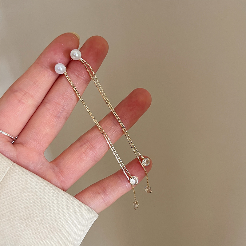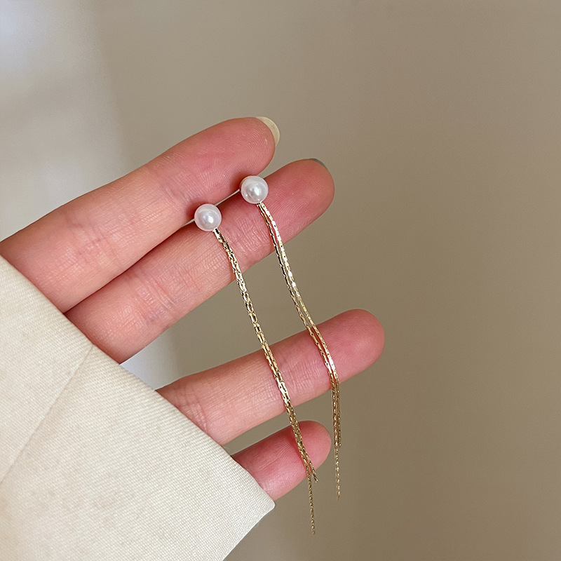 韩式长款流苏珍珠耳钉仙女风时尚森系精致小众设计耳环耳饰秋冬款