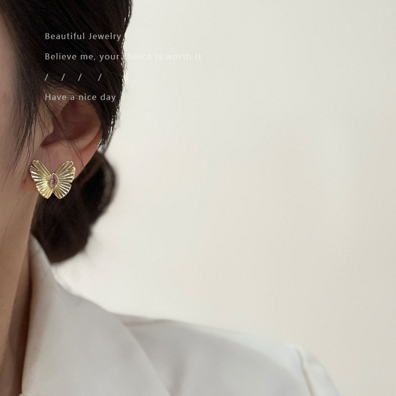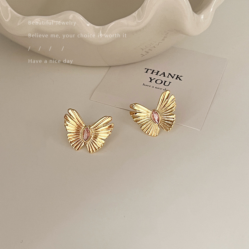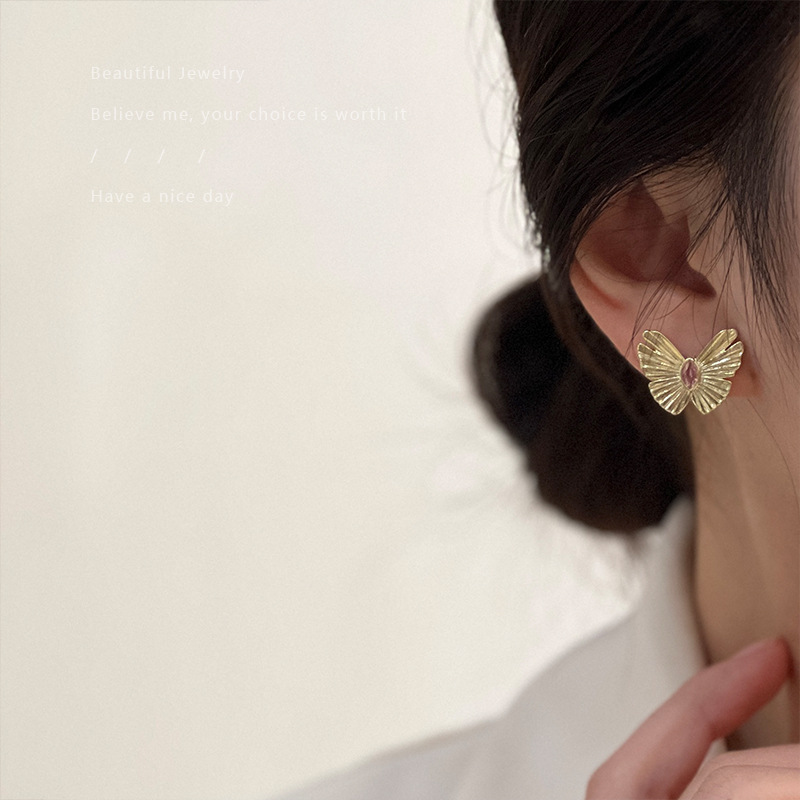时尚不规则蝴蝶锆石耳钉耳环女高级感轻奢小众气质个性耳饰欧美风