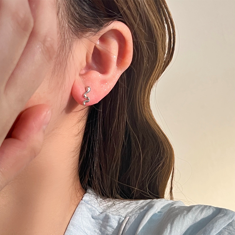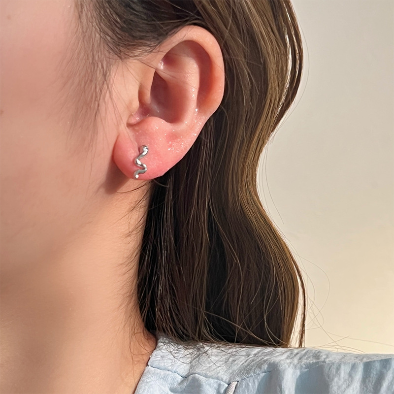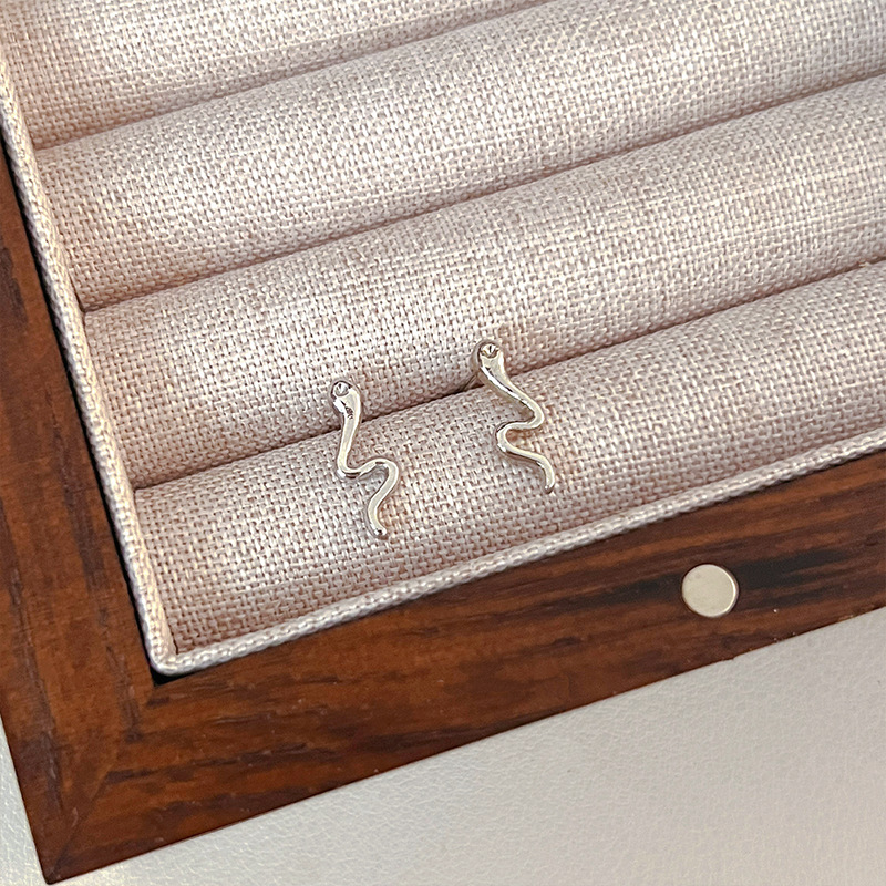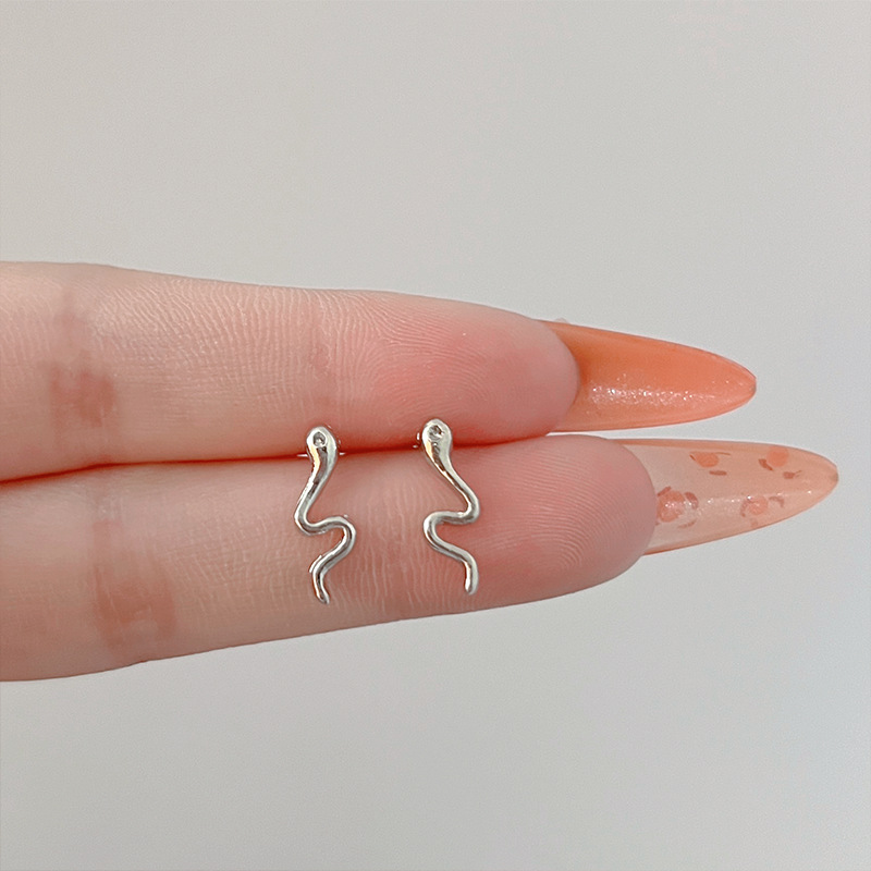 S925银针简约迷你小巧蛇形耳钉女可爱百搭气质耳环时尚高级感耳饰